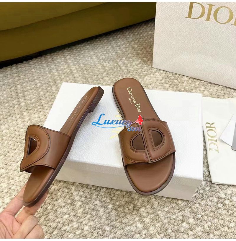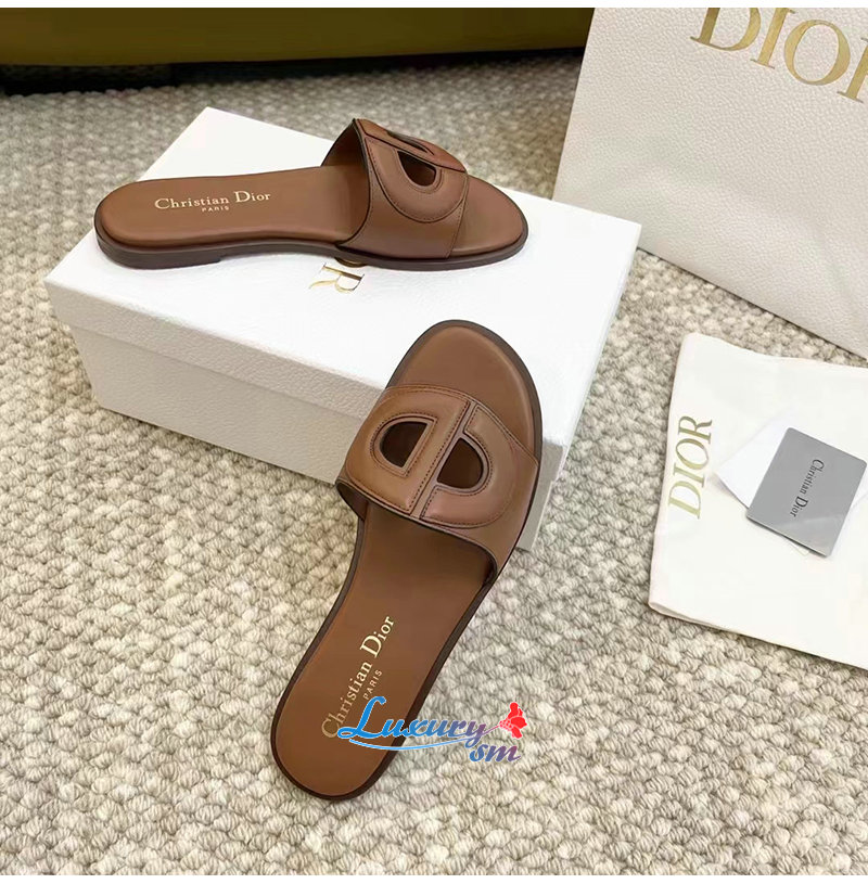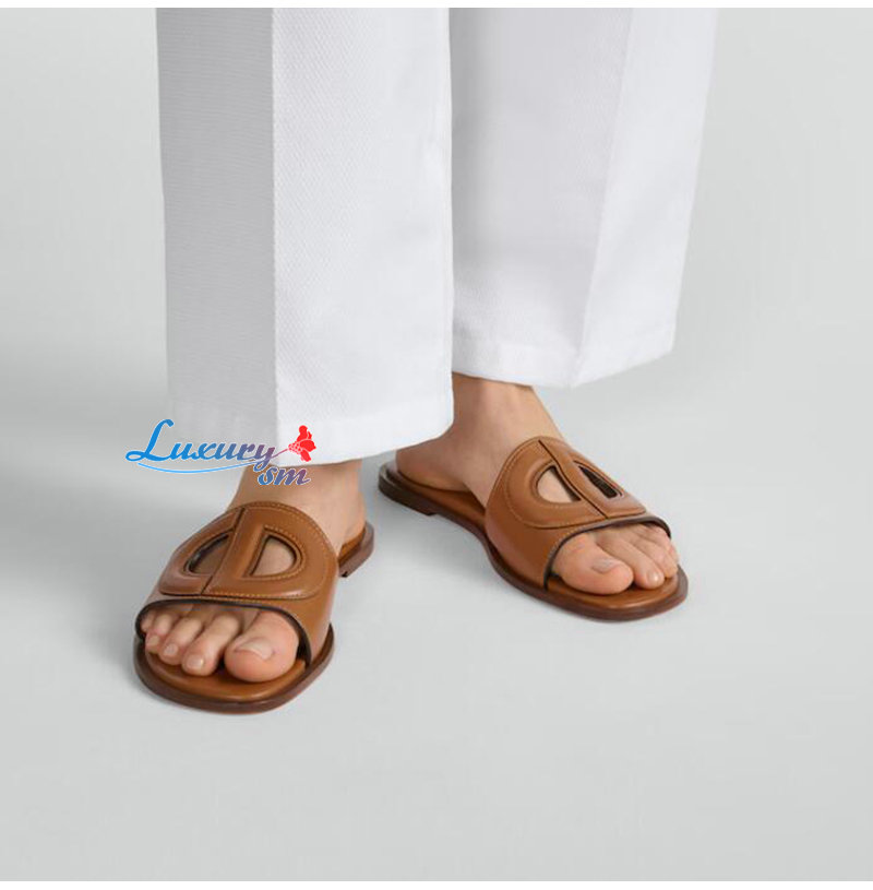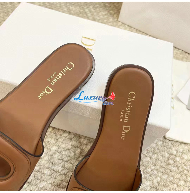 DIOR-KCO049 디올 카멜 송아지 가죽 D-Club 뮬 여성용
