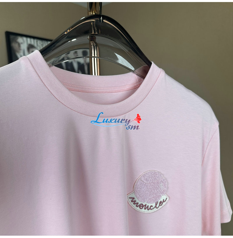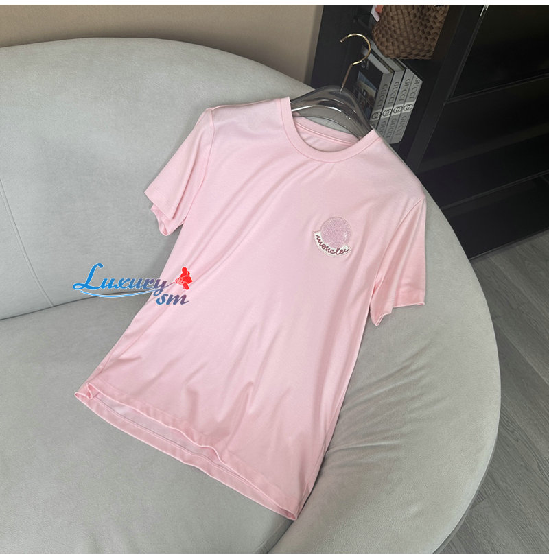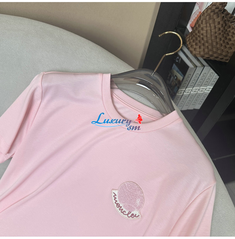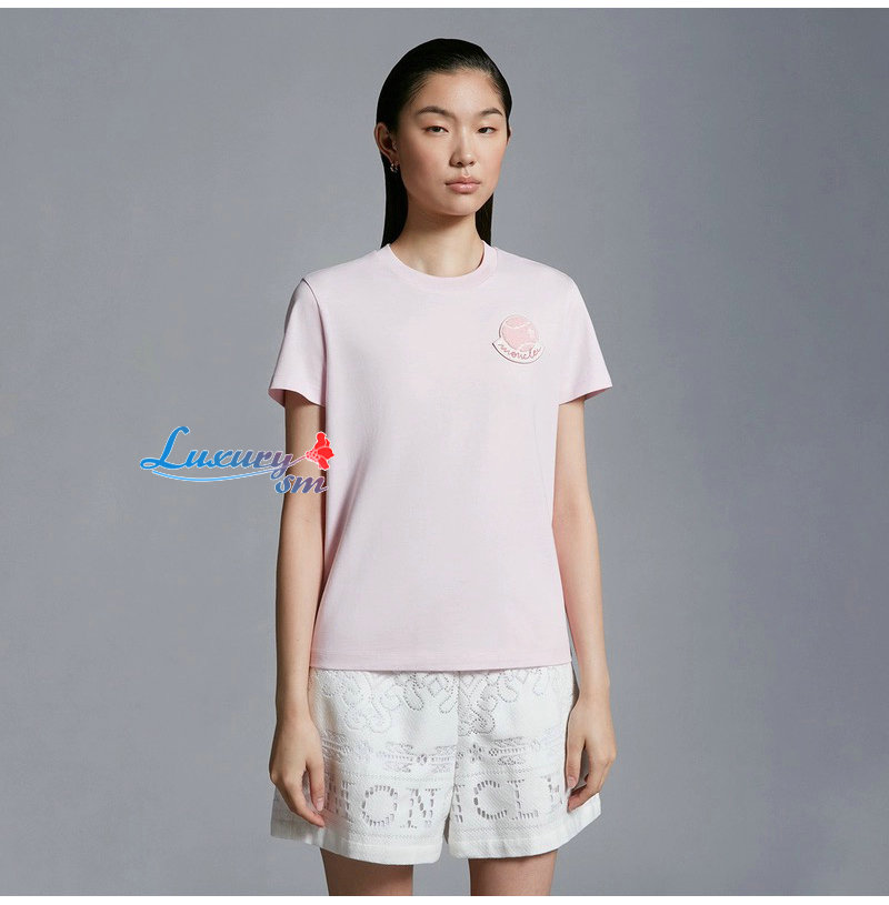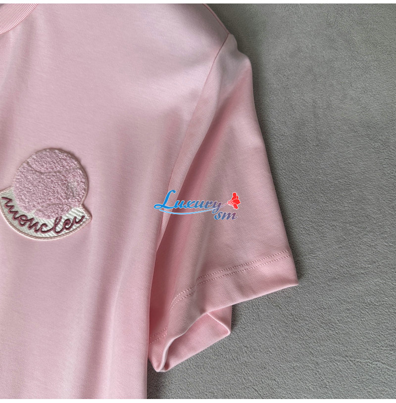 MONCLER-06283 몽클레어 핑크 로고 아플리케 장식 티셔츠 여성용