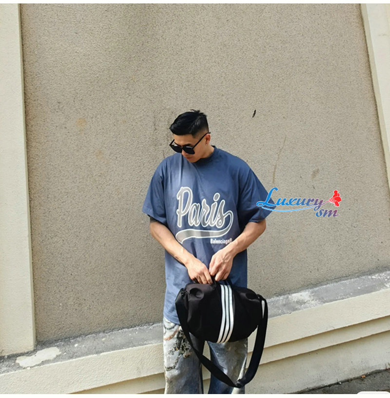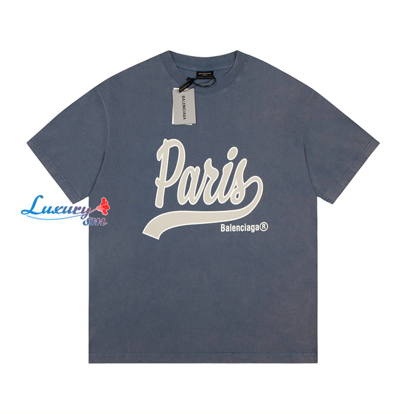 BALENCIAGA-07181 발렌시아가 블루 프린트 장식 티셔츠 남여공용
