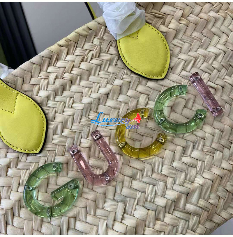 천연 우븐 스트로우 / 옐로우 가죽 트리밍
