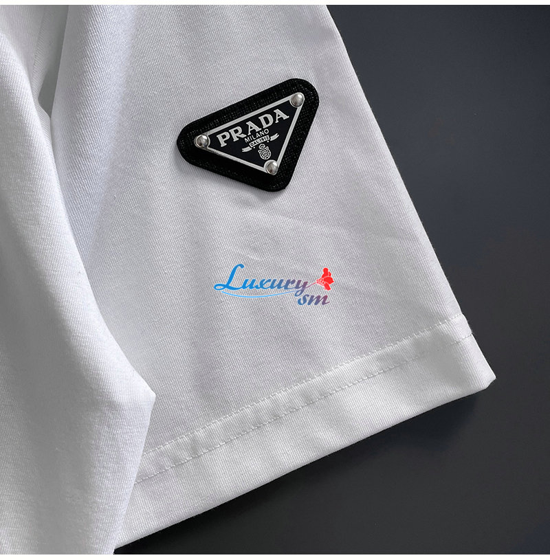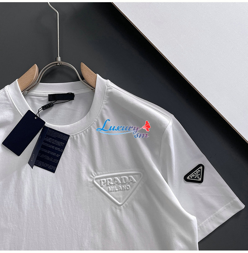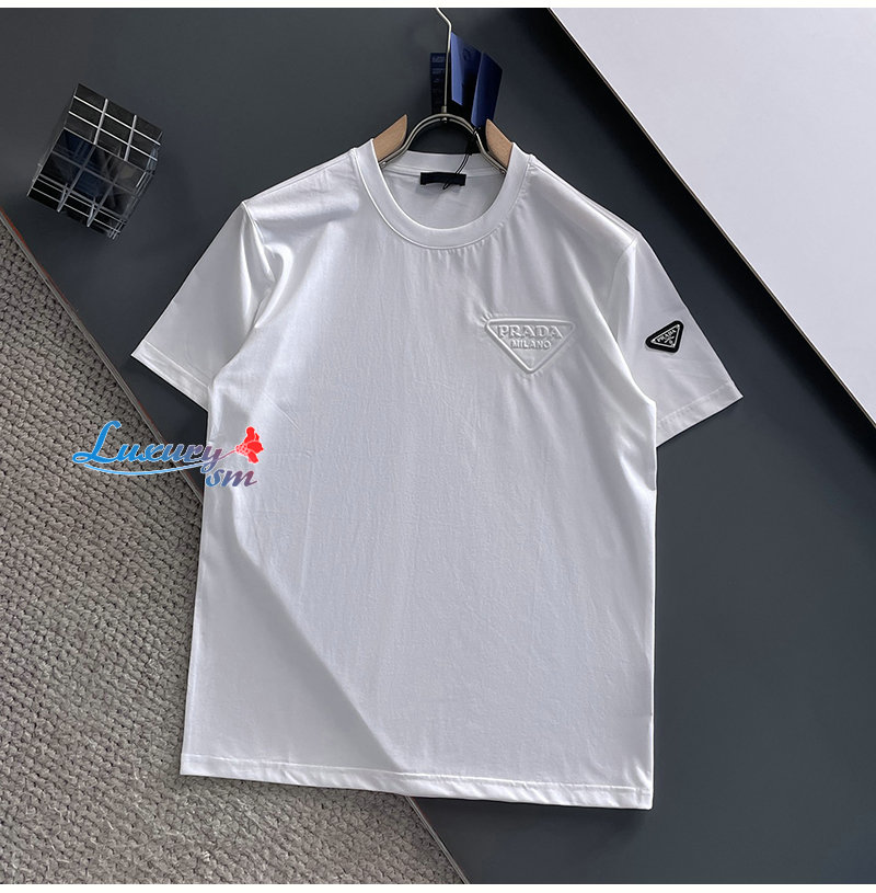 PRADA-07212 프라다 화이트 트라이앵글 로고 티셔츠 남성용