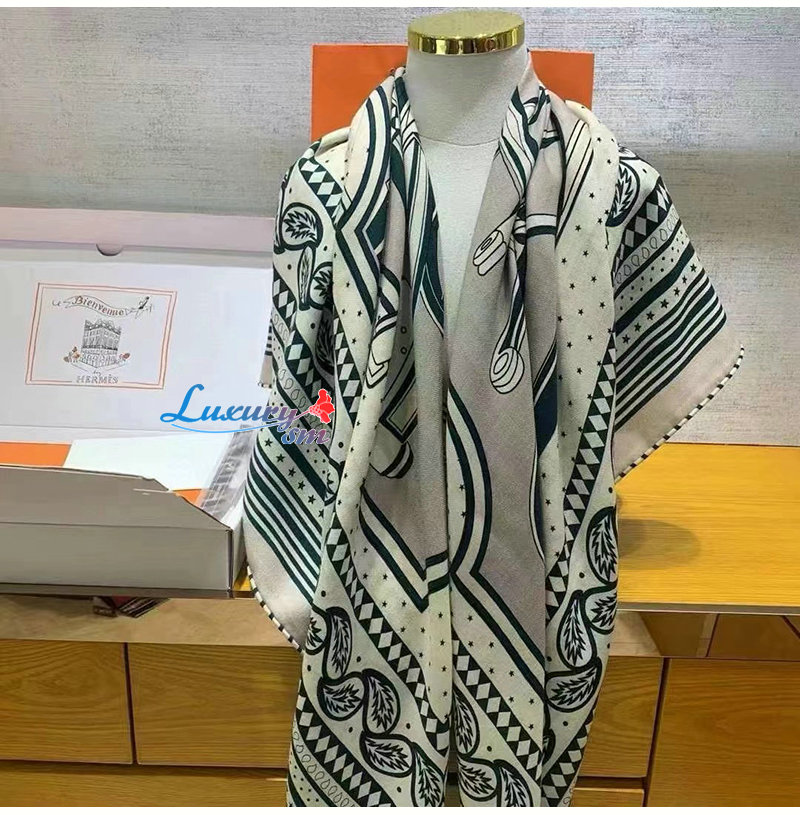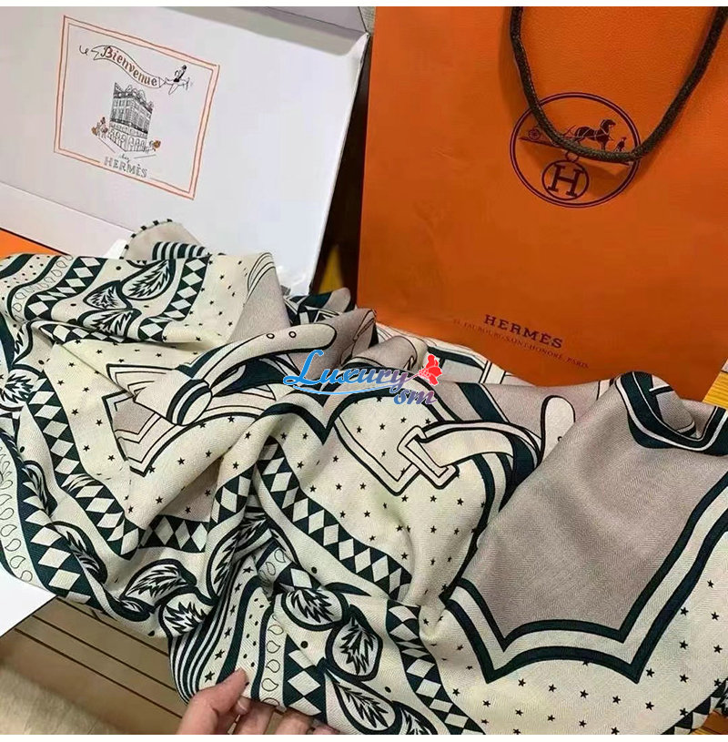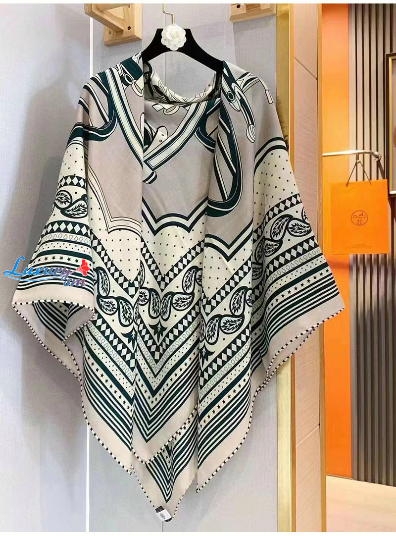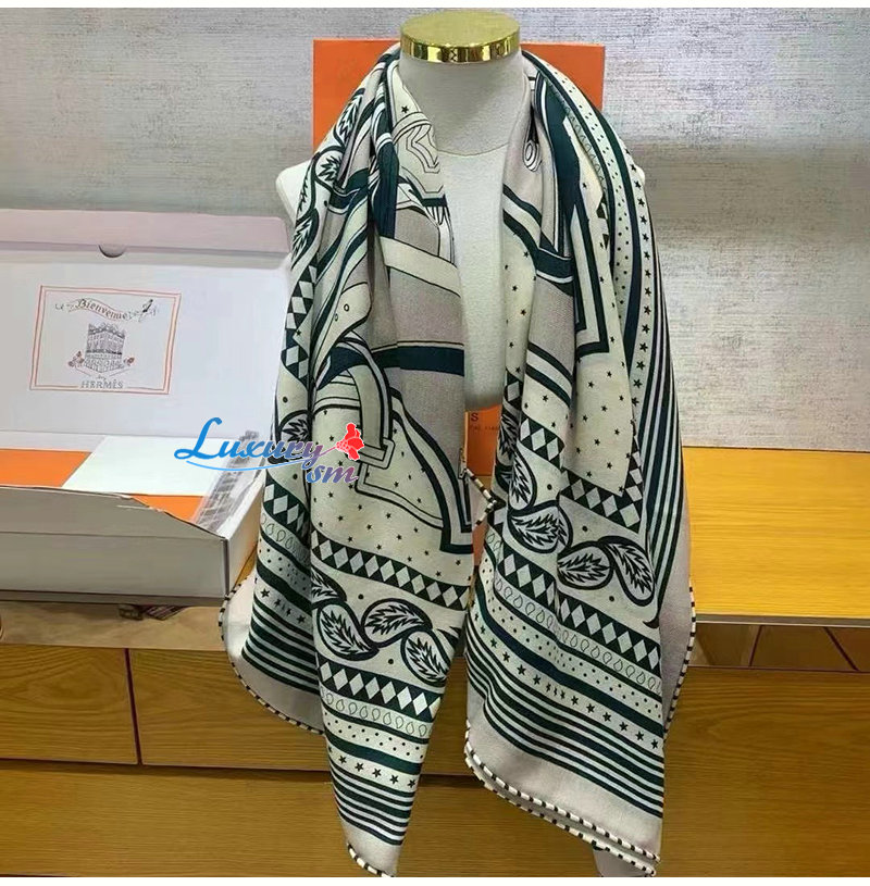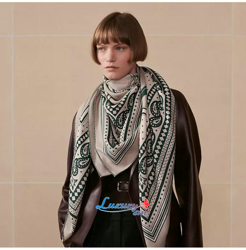 HERMES-H244170S 에르메스 그린 Les Roues de Phaeton Bandana 숄140