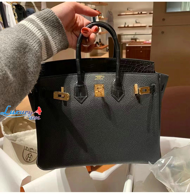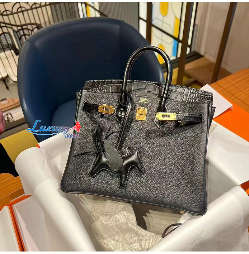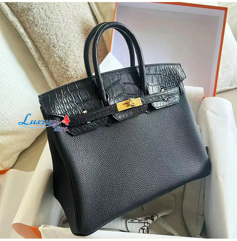 [스페셜오더]HERMES-에르메스 블랙 악어가죽/토고가죽 벌킨 25