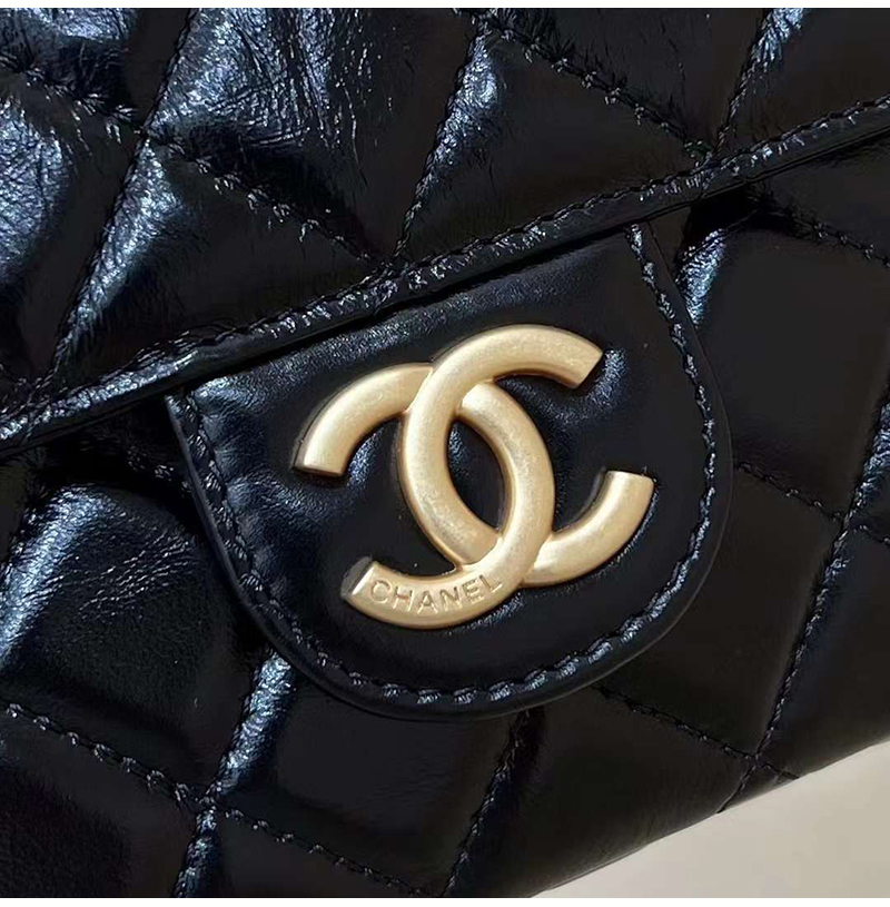 샤이니 크럼플드 카프스킨 / 빈티지 골드 메탈 하드웨어