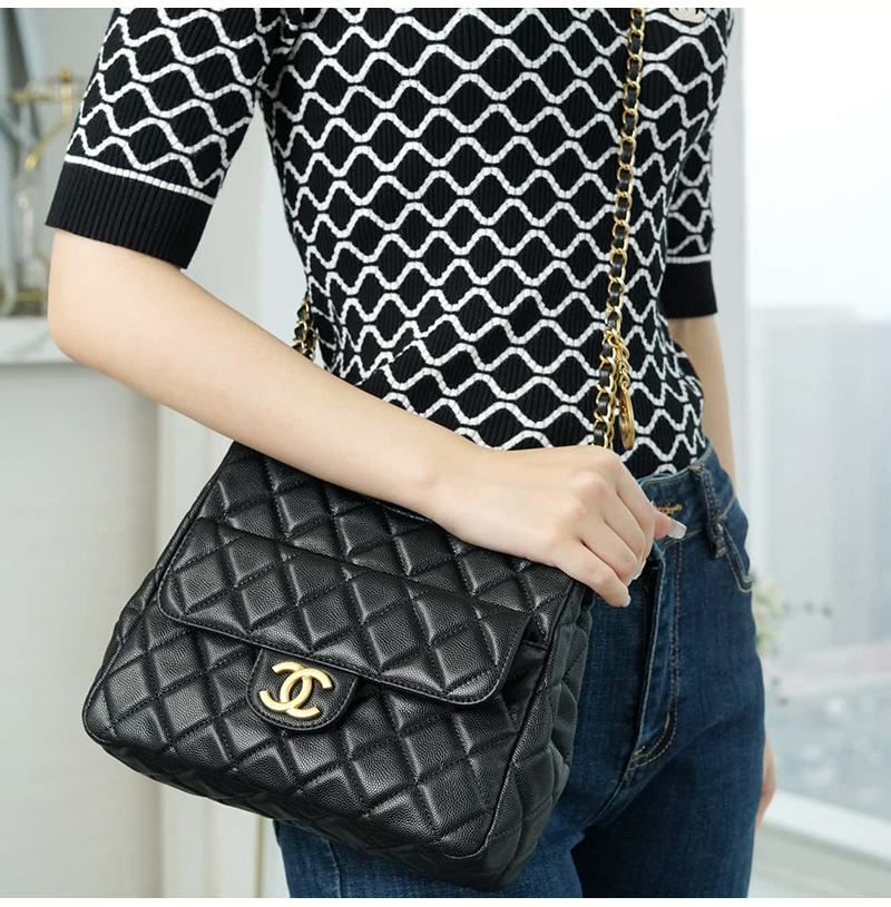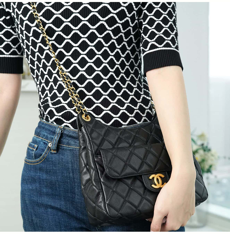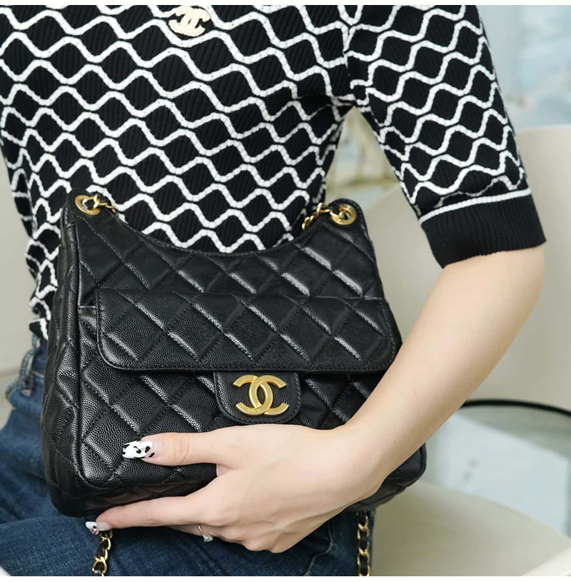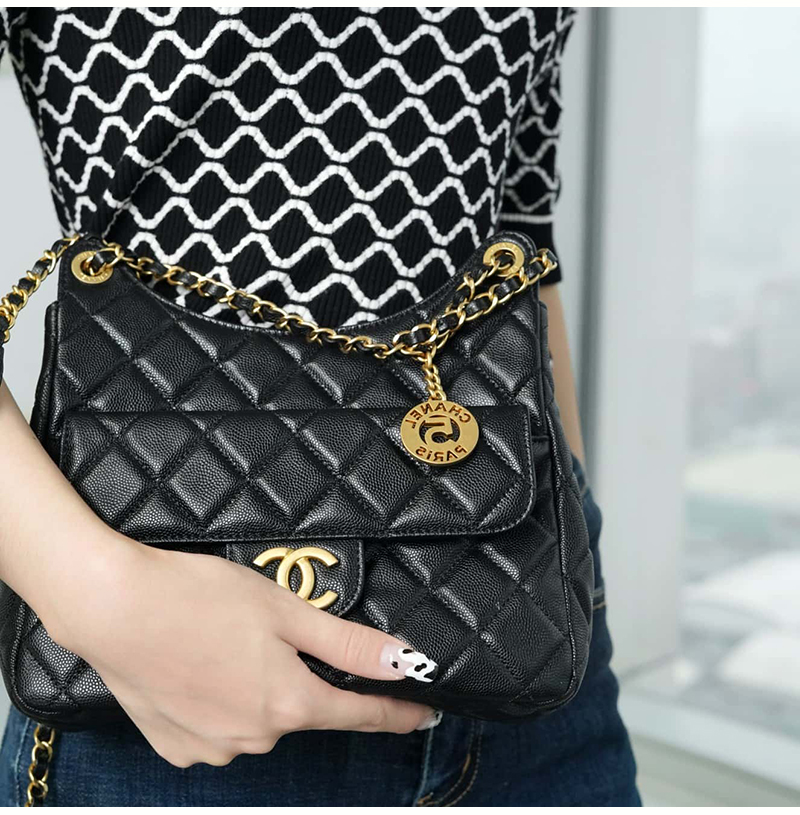 [스페셜오더]CHANEL-AS3690 샤넬 크루즈 블랙 캐비어 미디엄 호보 핸드백 21.5cm