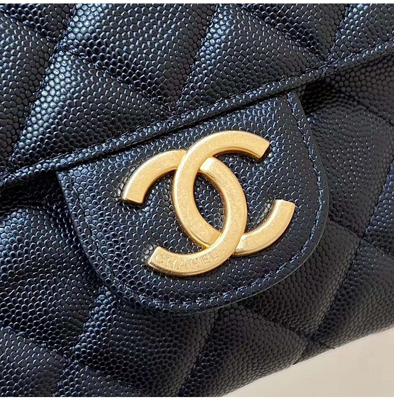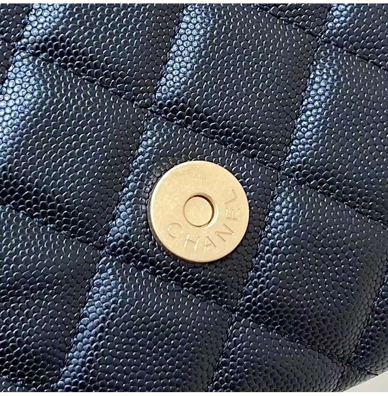 캐비어 카프스킨 / 빈티지 골드 메탈 하드웨어