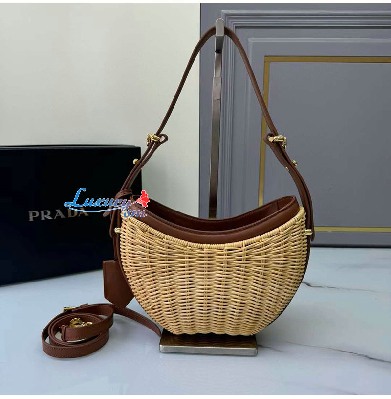 PRADA-1BC202 프라다 브라운/내추럴 위커와 가죽