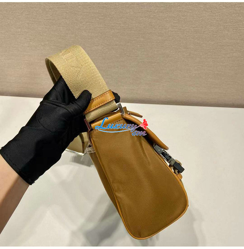 [스페셜오더]PRADA-2VD066 프라다 밀리터리/캐러멜 리나일론 및 가죽 숄더백 20cm 가격 : 380,000원