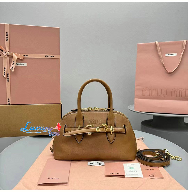 [스페셜오더]MIUMIU-5BB169 미우미우 브라운 아방뛰르 나파 가죽 스몰 탑 핸들 백 가격 : 520,000원