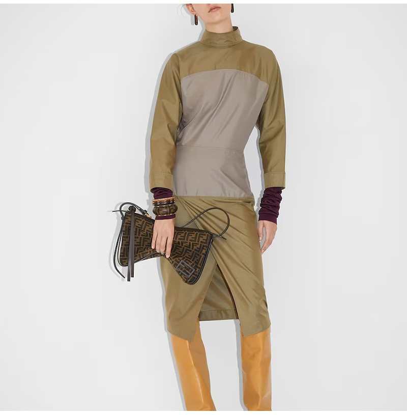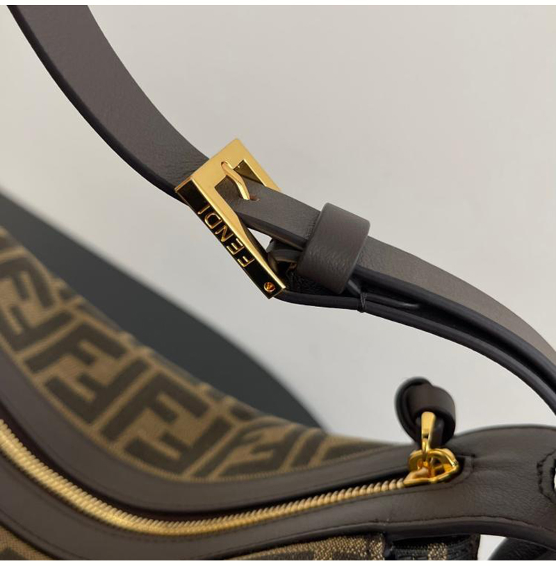 브라운 FF 자카드 패브릭 / 카프스킨 가죽 트리밍