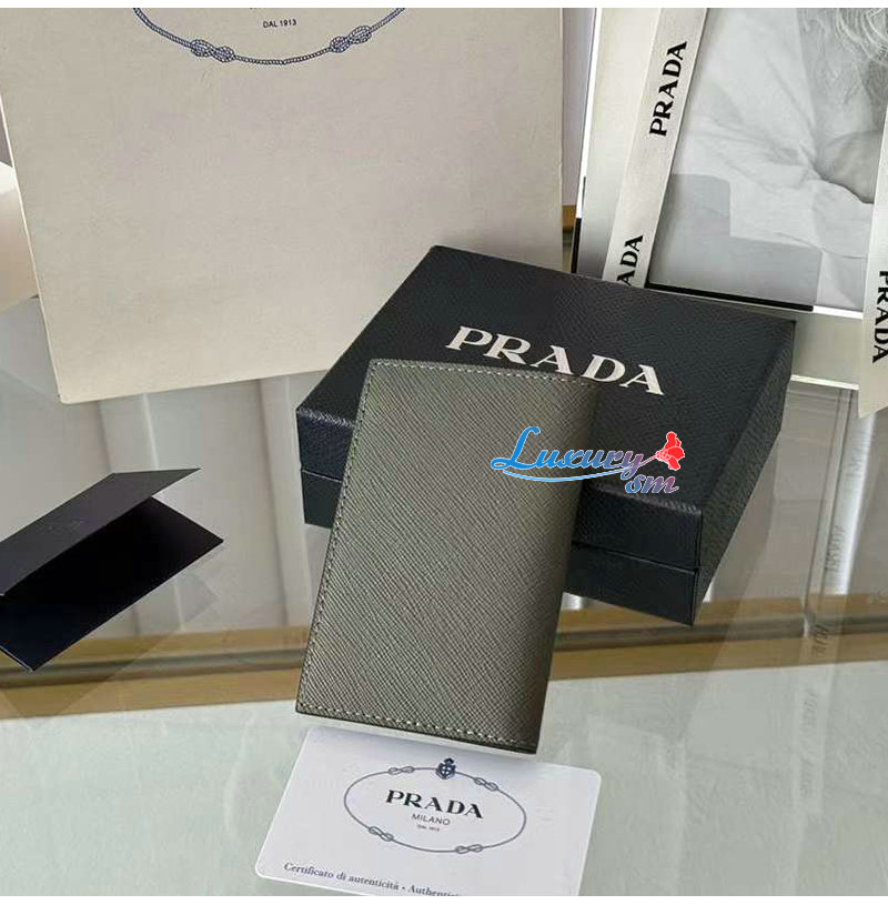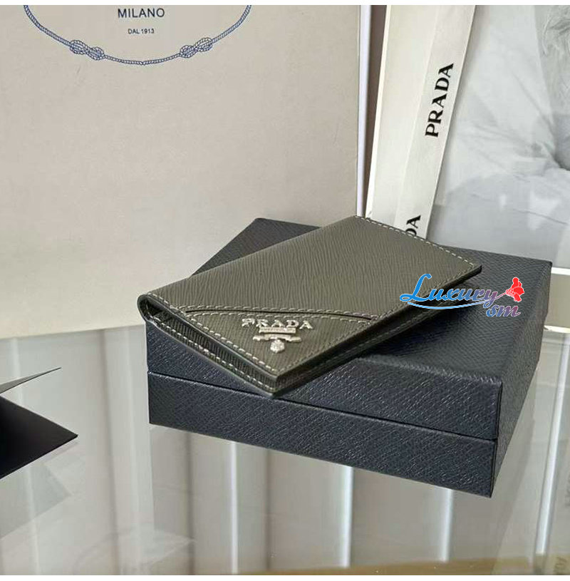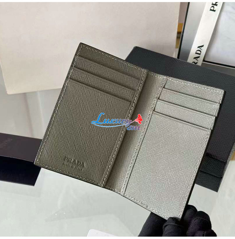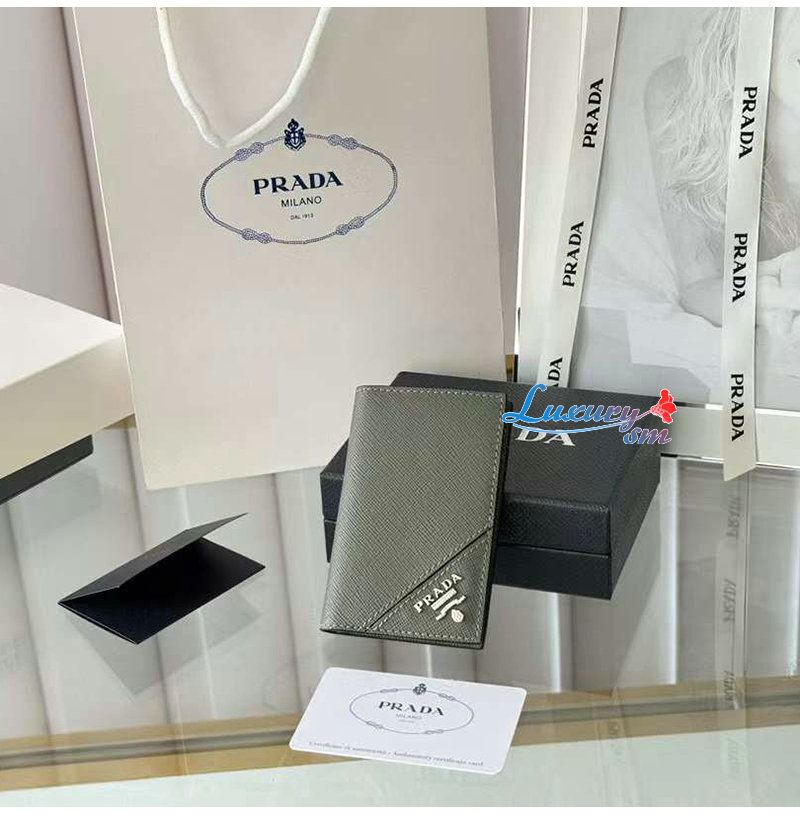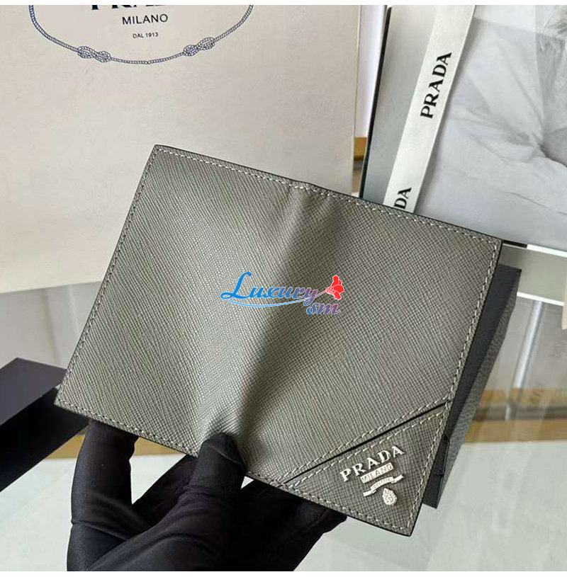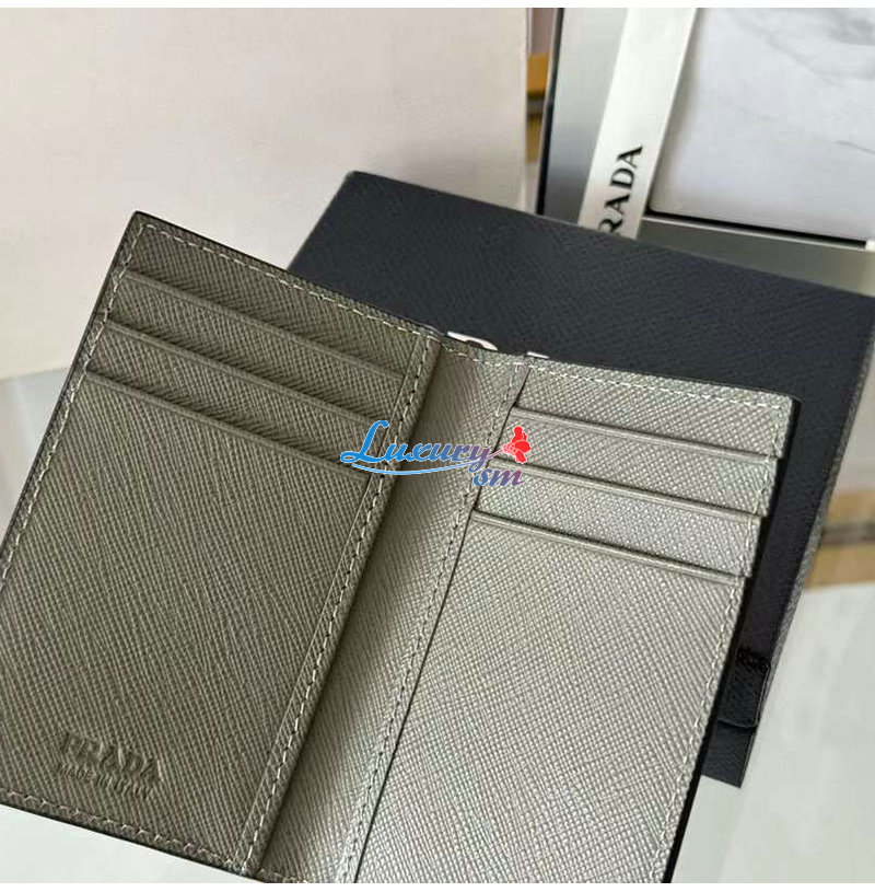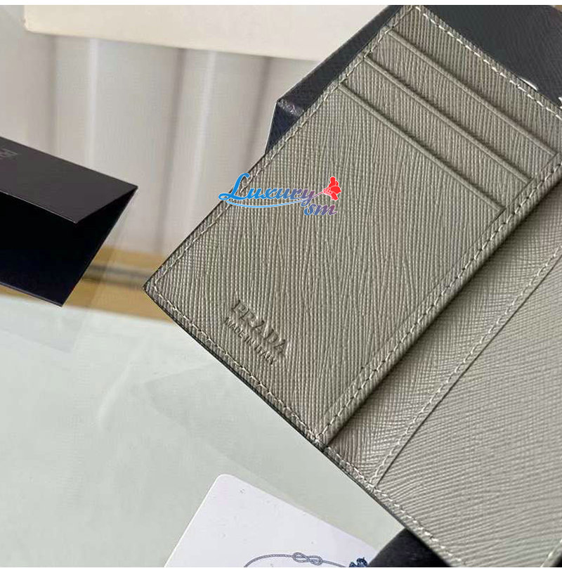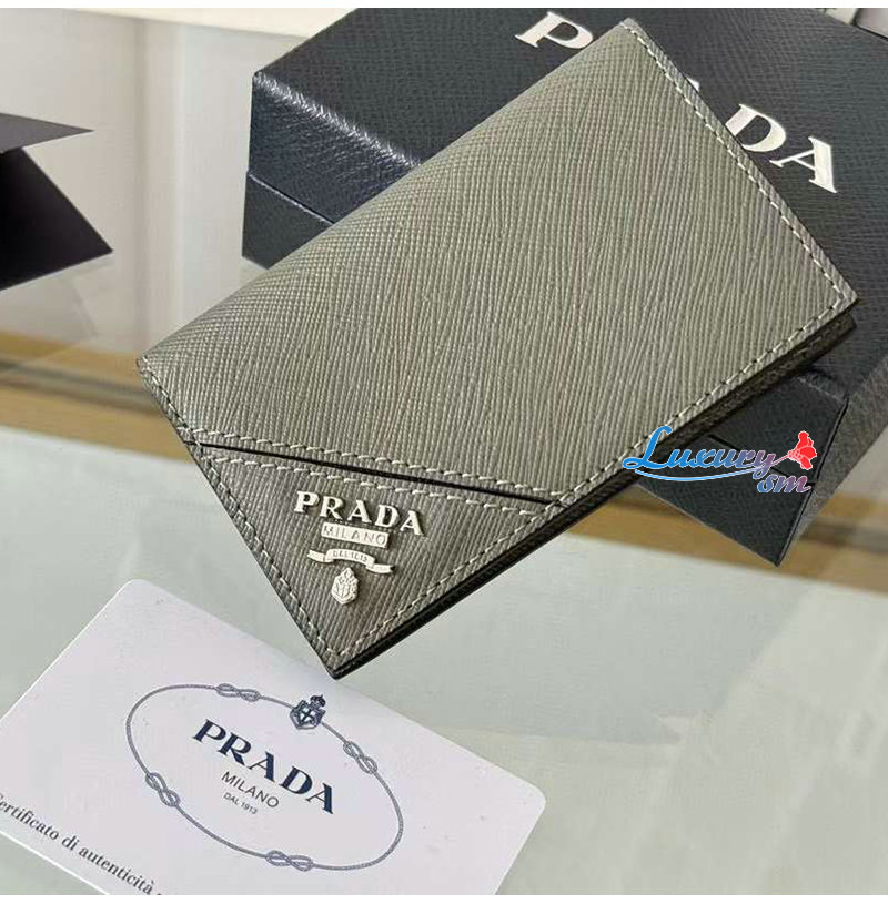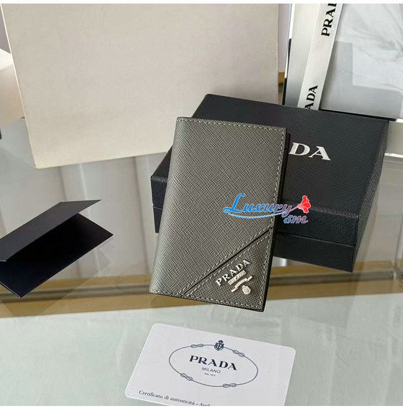 [스페셜오더]PRADA-2MC101 프라다 그레이 메탈 로고 사피아노 가죽 카드 홀더