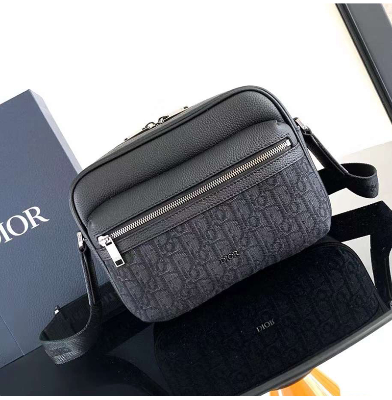 [스페셜오더]DIOR-디올 블랙 Oblique 자카드 Rider 2.0 미니 지퍼 메신저백 18.5cm - 2ESWS034YKS_H03E