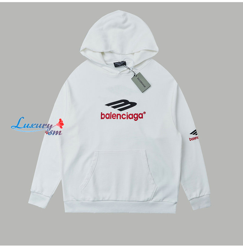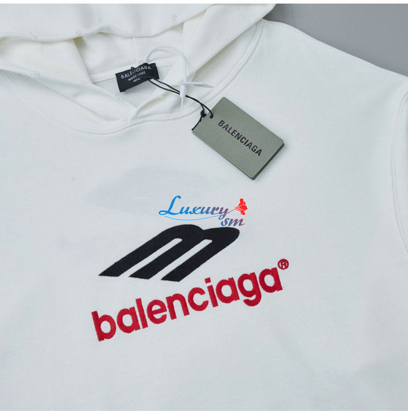 BALENCIAGA-08307 발렌시아가 화이트 아플리케 장식 후드 티셔츠 남여공용