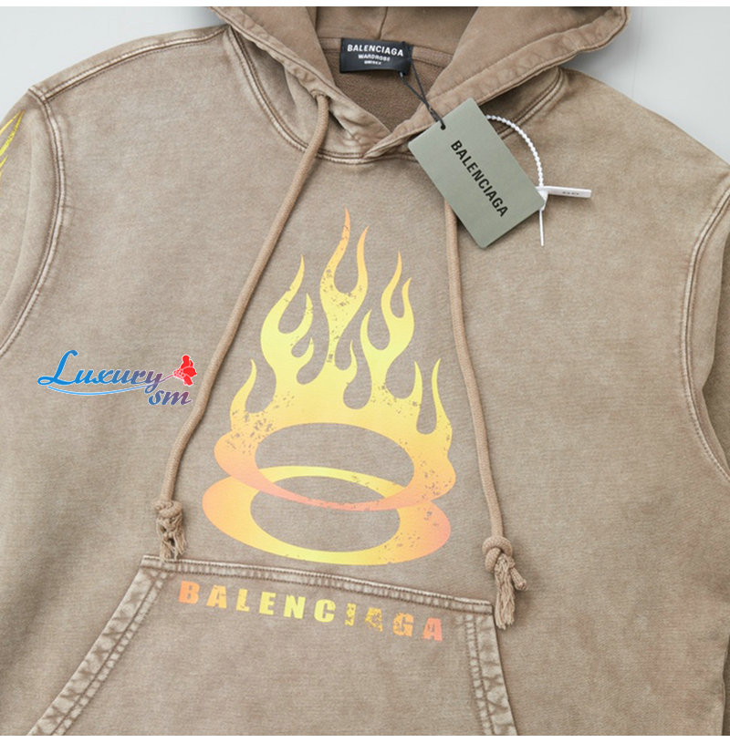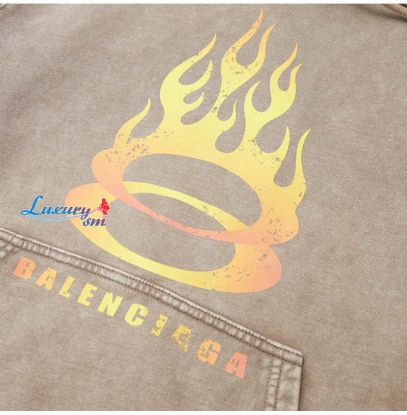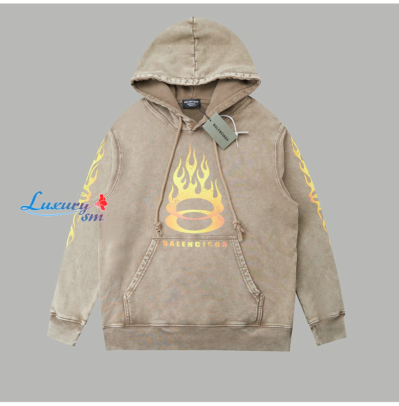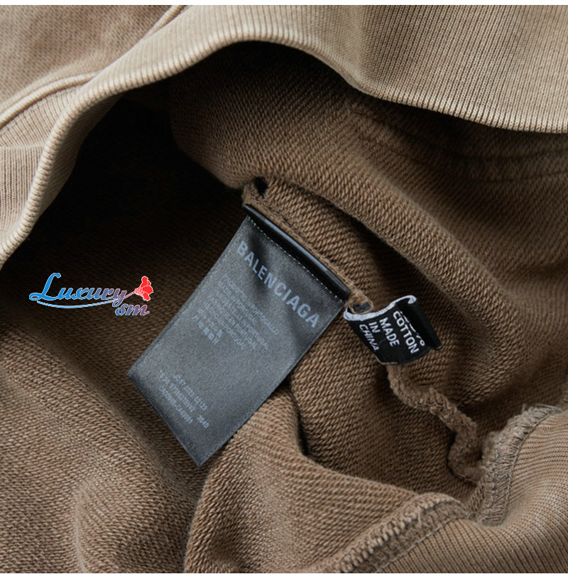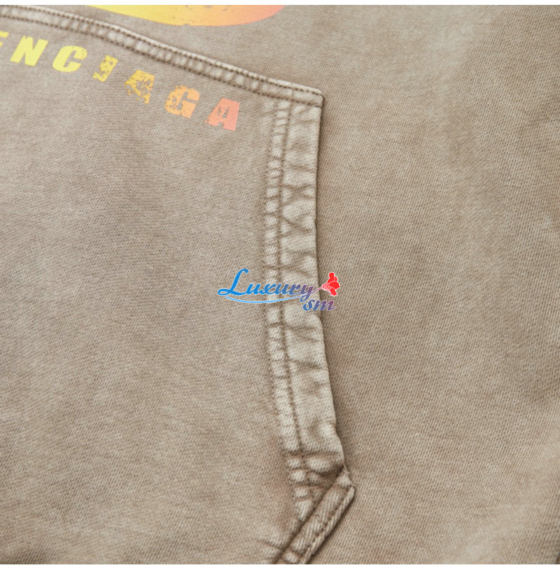 BALENCIAGA-090916 발렌시아가 베이지 프린트 장식 워싱 후드 티셔츠 남성용