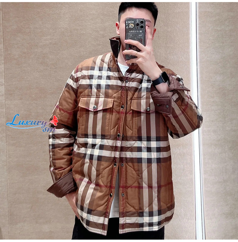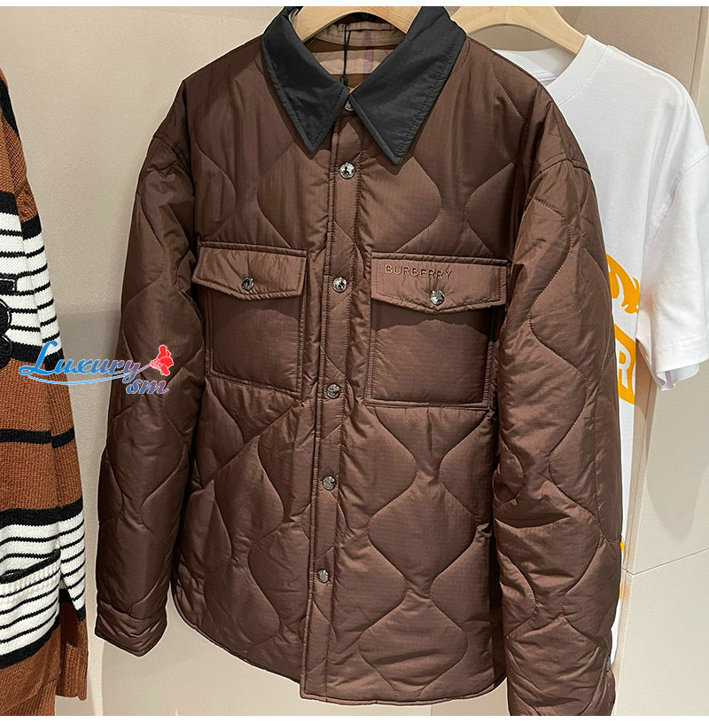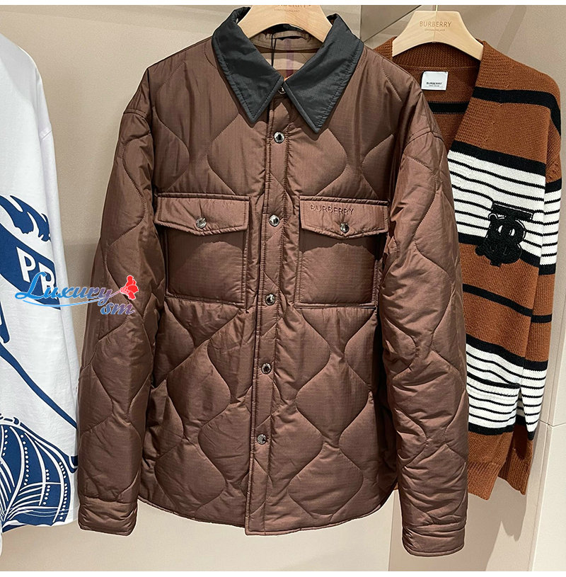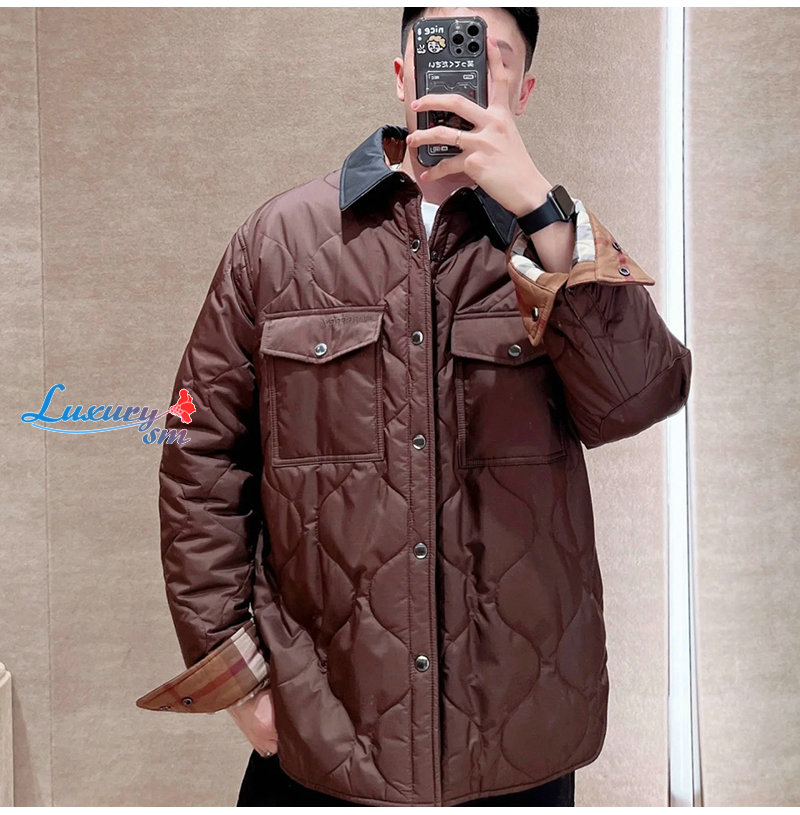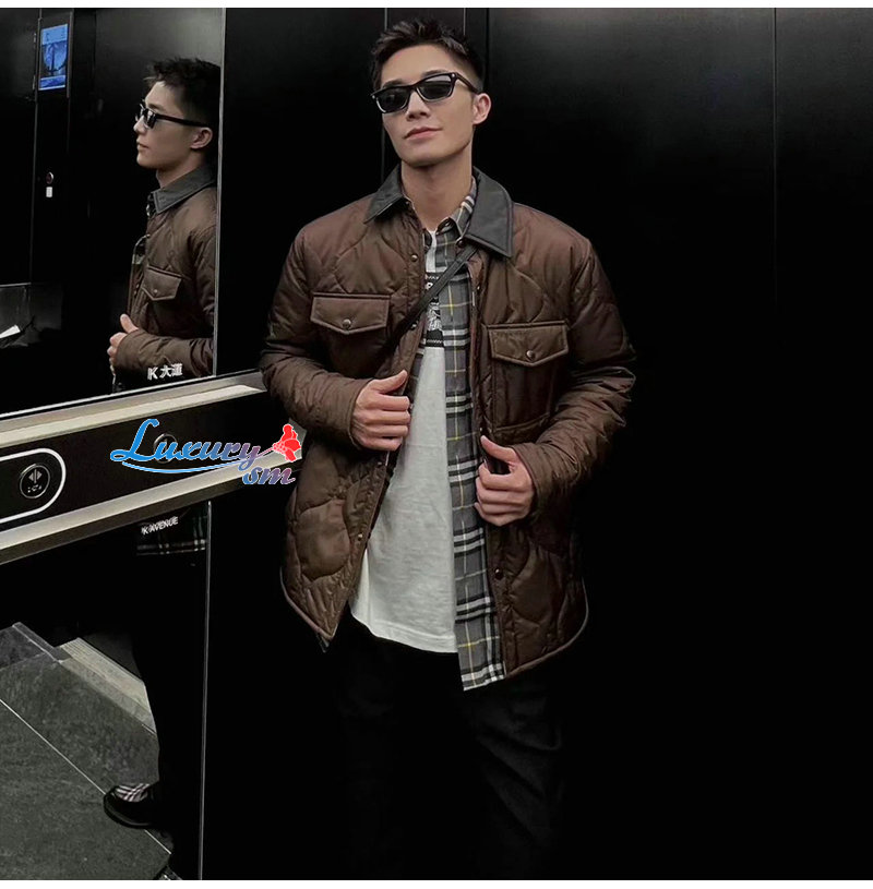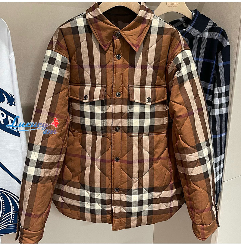 BURBERRY-09223 버버리 브라운 체크 무늬 양면 퀄팅 재킷 남성용