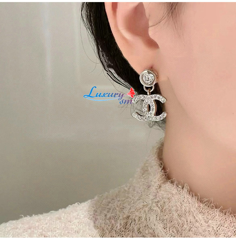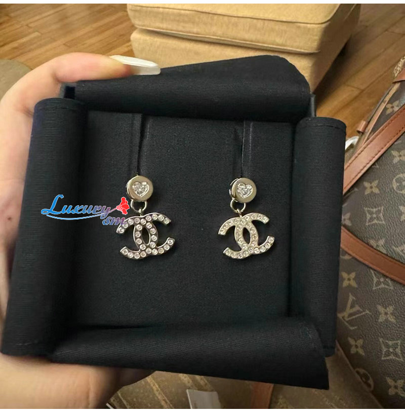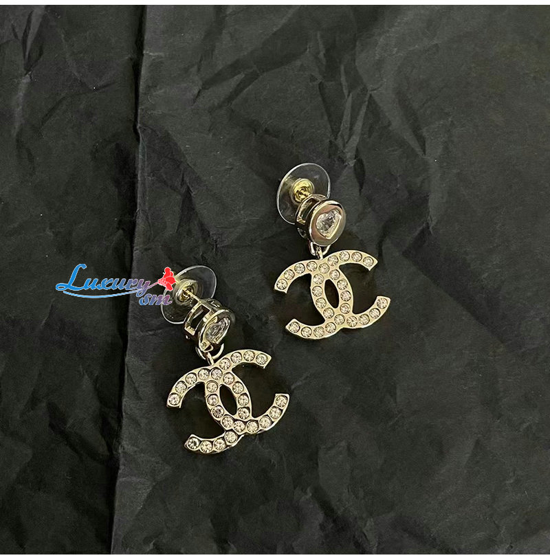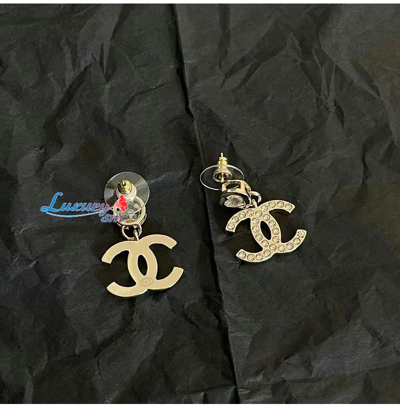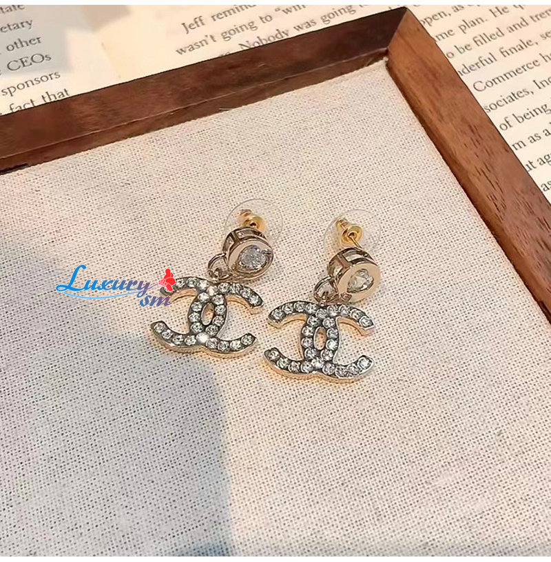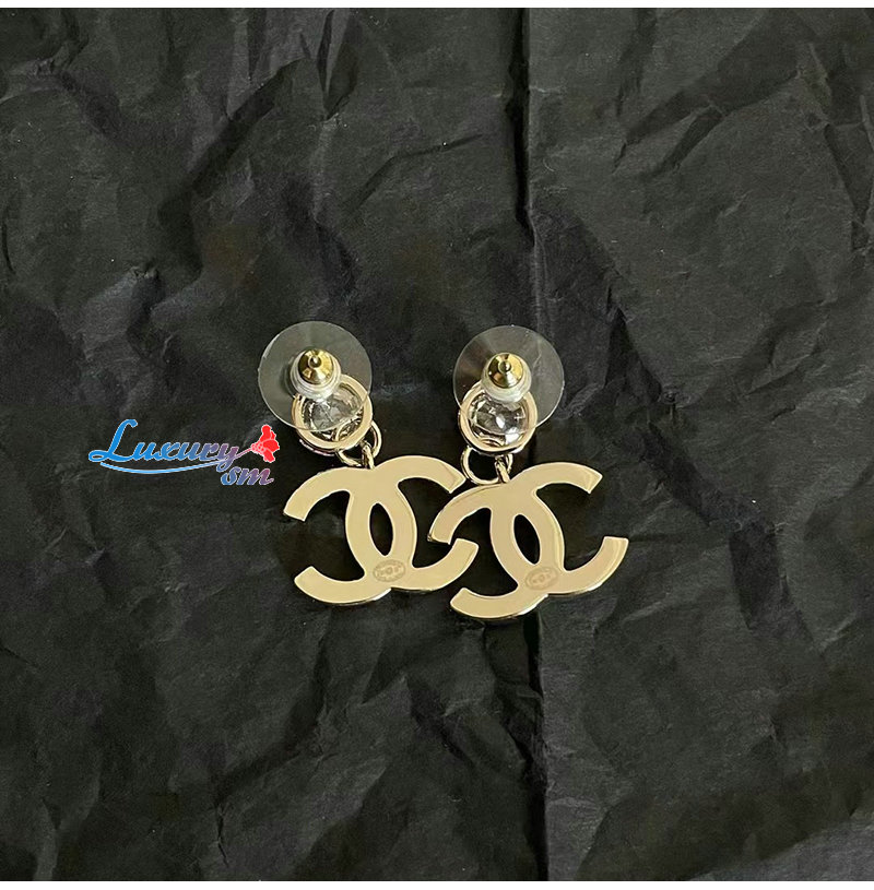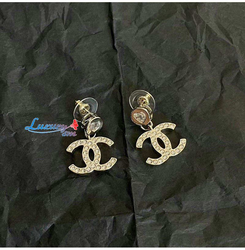 CHANEL-7537 샤넬 골드 크리스탈 장식 CC 로고 귀걸이