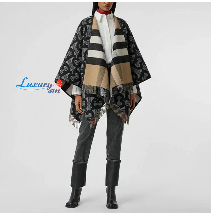 BURBERRY-09243 버버리 베이지/블랙 체크 울 케이프