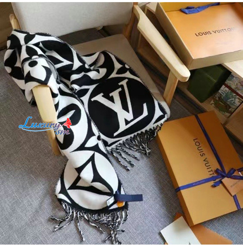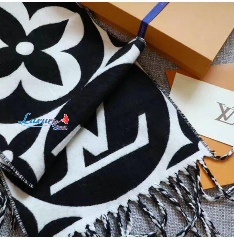 LOUIS VUITTON-09244 루이비통 블랙 모노그램 플라워 울 스카프