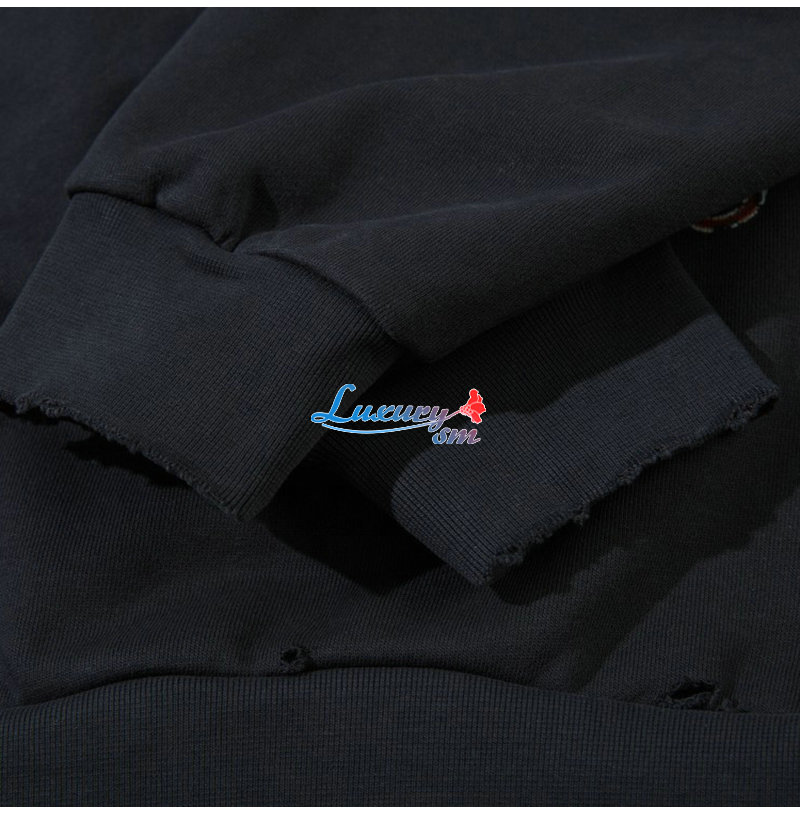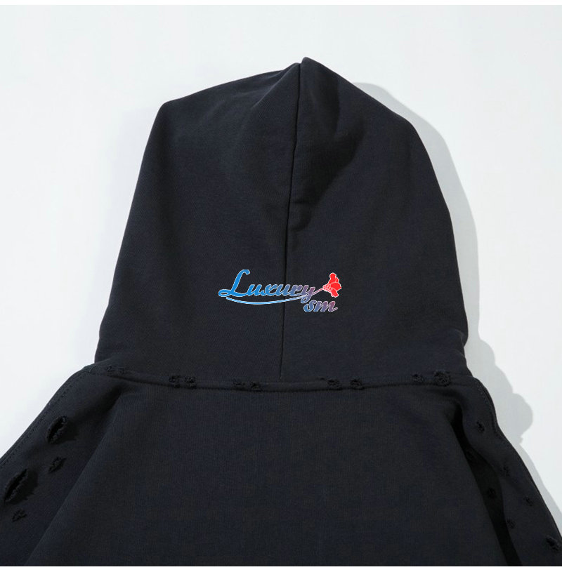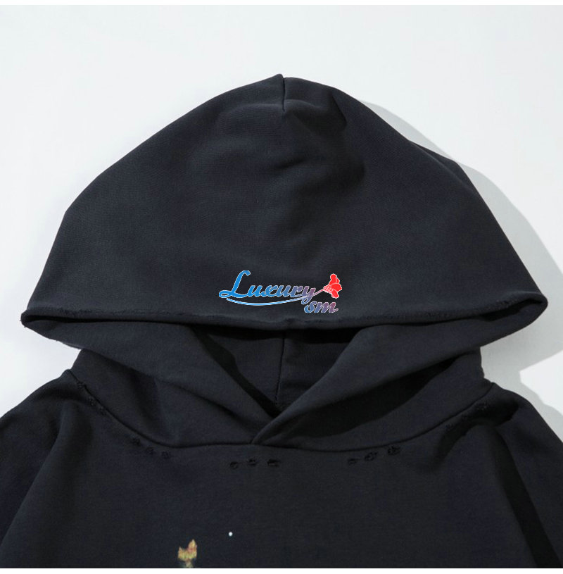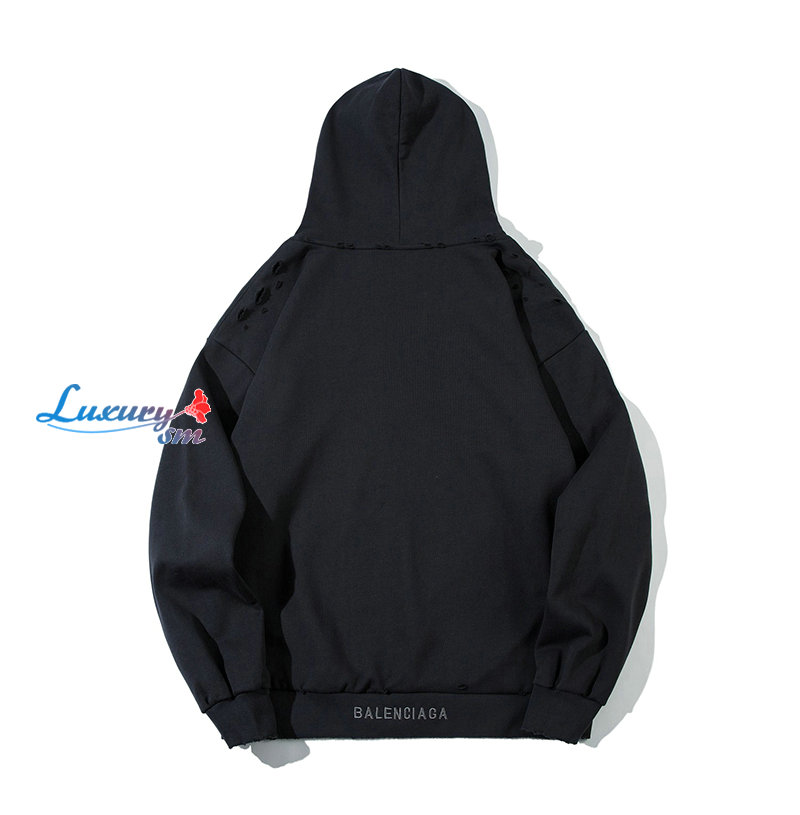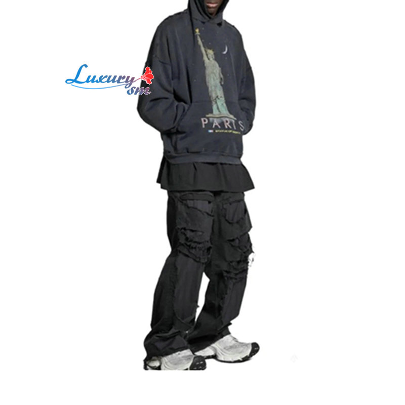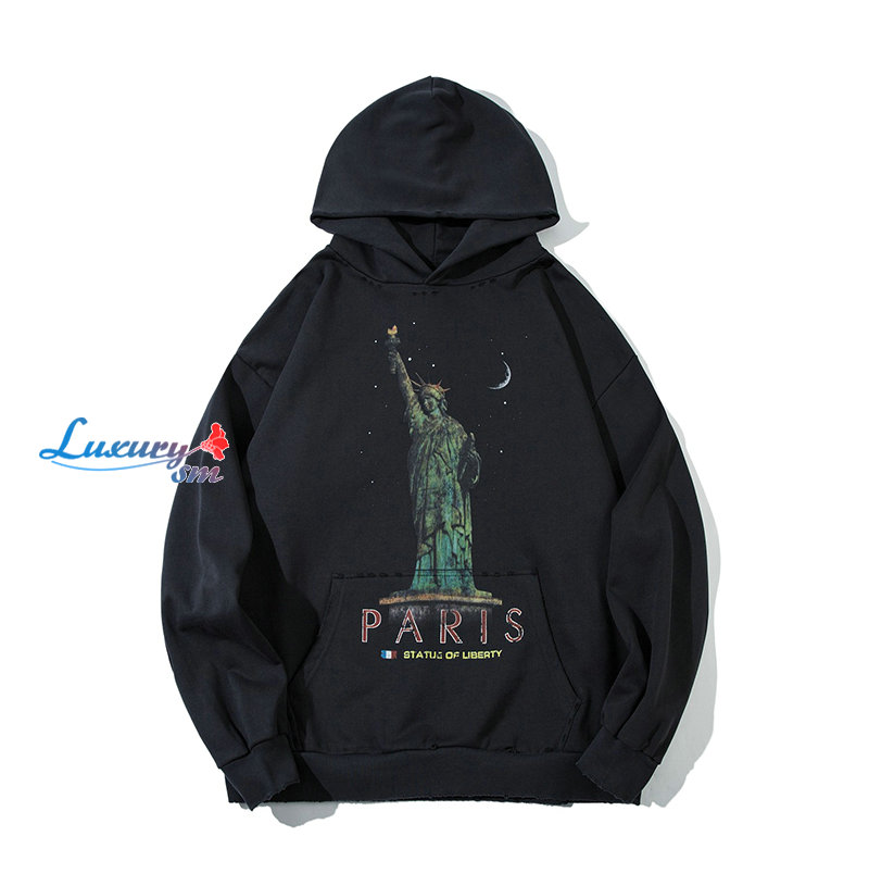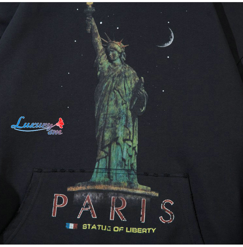 BALENCIAGA-09251 발렌시아가 블랙 자유의 여신상 프린트 장식 후드 티셔츠 남성용