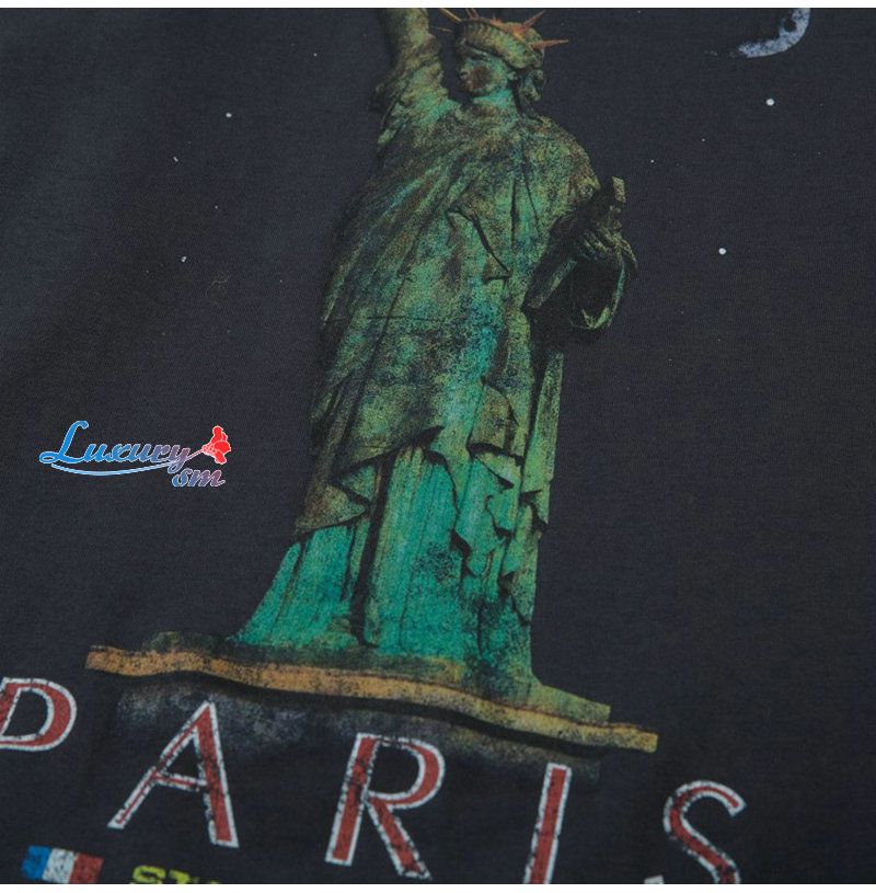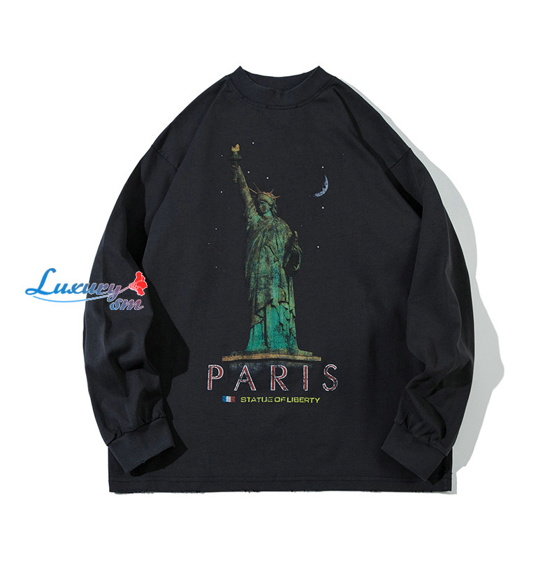 BALENCIAGA-09252 발렌시아가 블랙 자유의 여신상 프린트 장식 스웨트셔츠 남성용