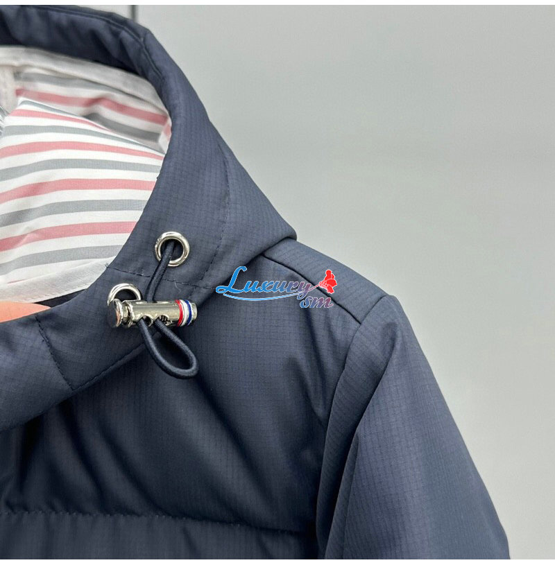 THOM BROWNE-100211 톰 브라운 네이비 스트라이프 장식 롱 패딩 여성용