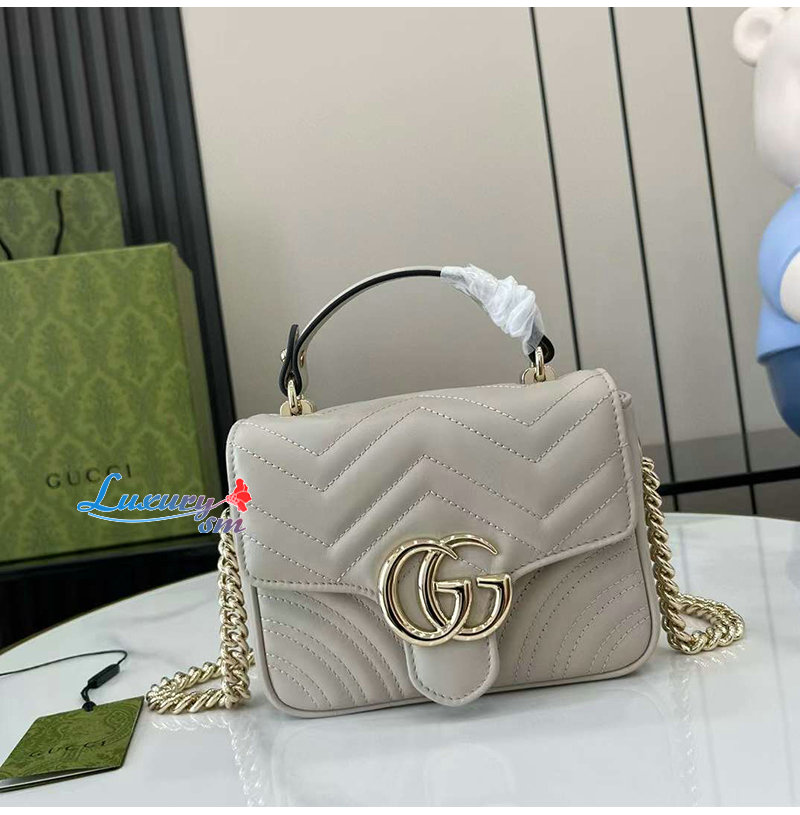 [스페셜오더]GUCCI-811238 1712 구찌 라이트 그레이 GG 마몽 미니 탑 핸들백