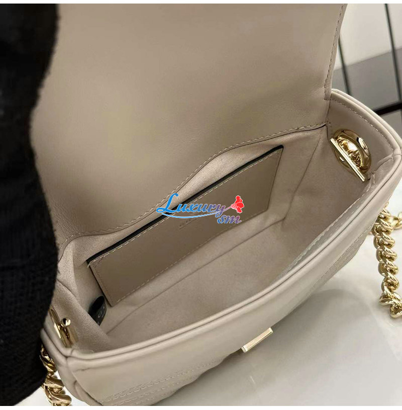트 골드 톤의 체인 스트랩이 어우러진 탑 핸들백.