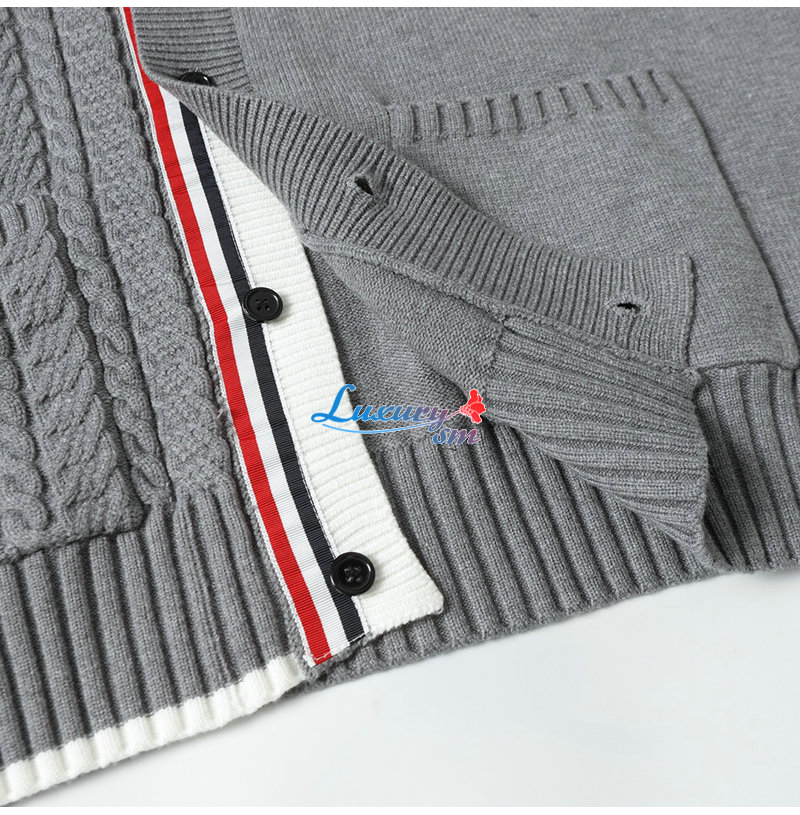 THOM BROWNE-110112 톰 브라운 그레이 스트라이프 장식 가디건 남여공용