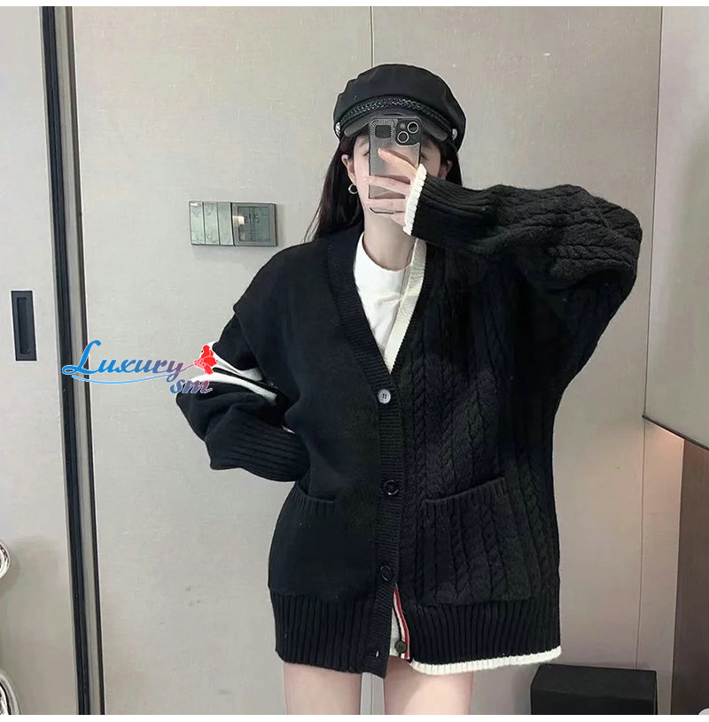 THOM BROWNE-110111 톰 브라운 화이트 스트라이프 장식 가디건 남여공용