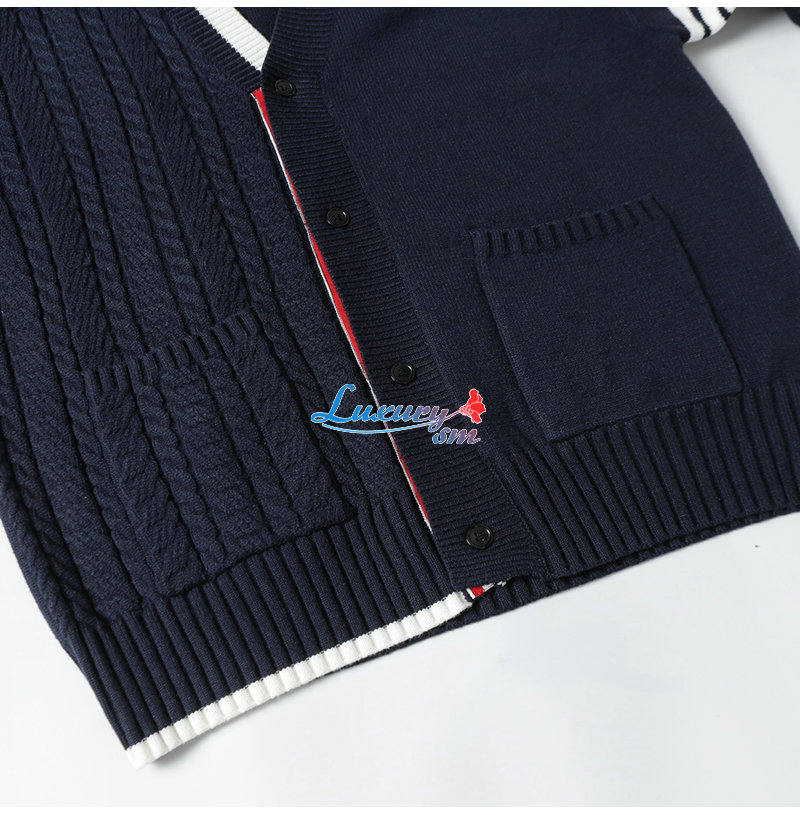 THOM BROWNE-110113 톰 브라운 네이비 스트라이프 장식 가디건 남여공용