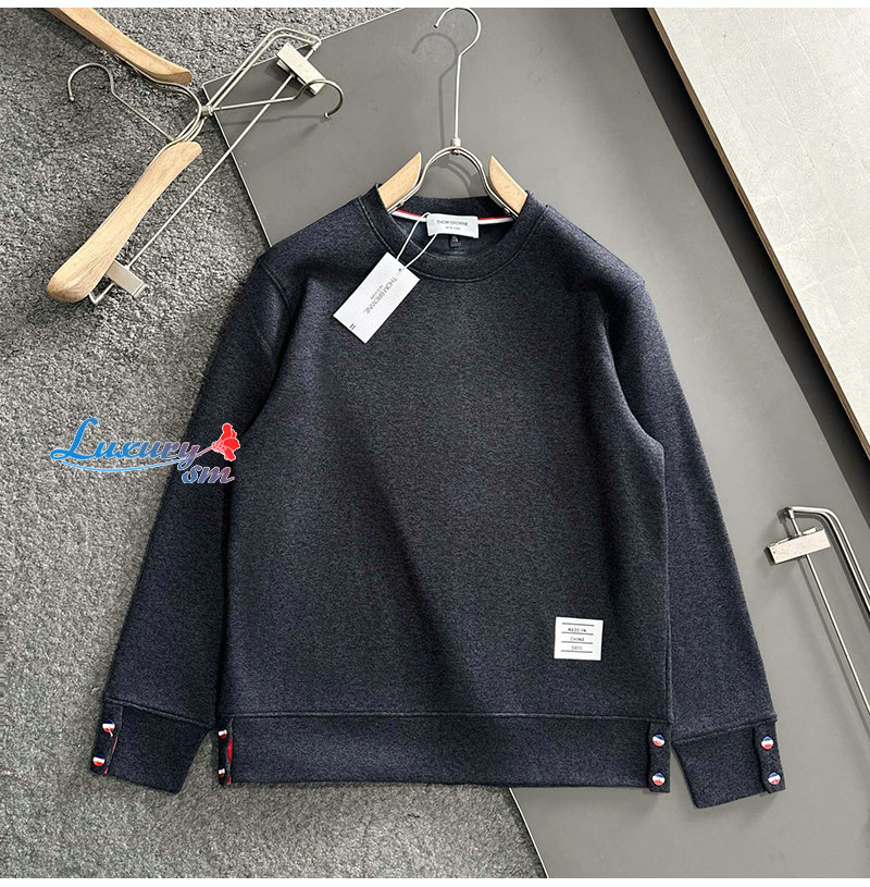 THOM BROWNE-11165 톰 브라운 다크 그레이 스트라이프 장식 스웨트셔츠 남성용