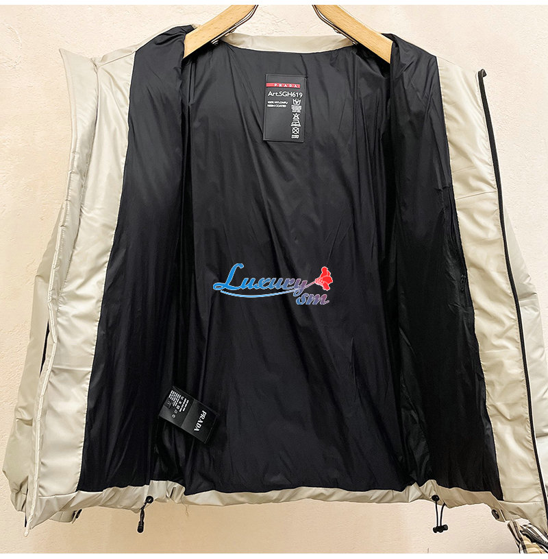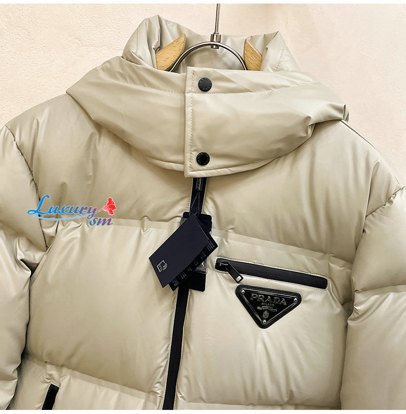 PRADA-11202 프라다 아이보리 트라이앵글 로고 패딩 남여공용