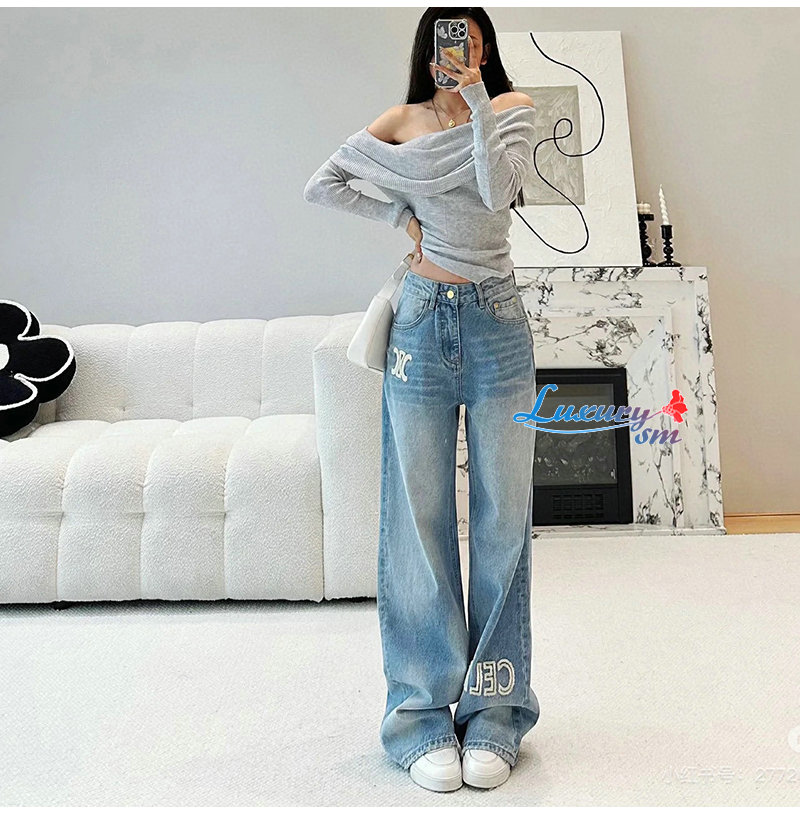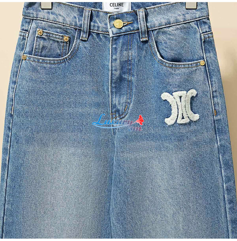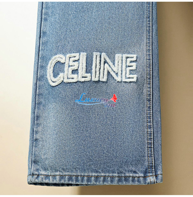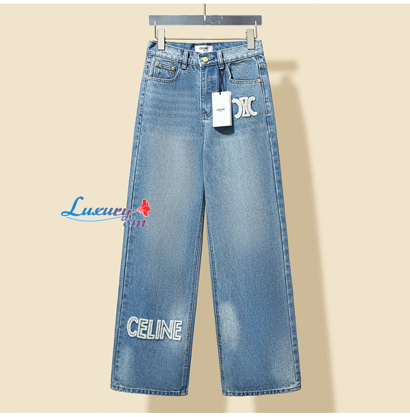 CELINE-112014 셀린느 라이트 블루 아플리케 장식 청바지 여성용