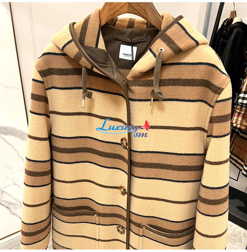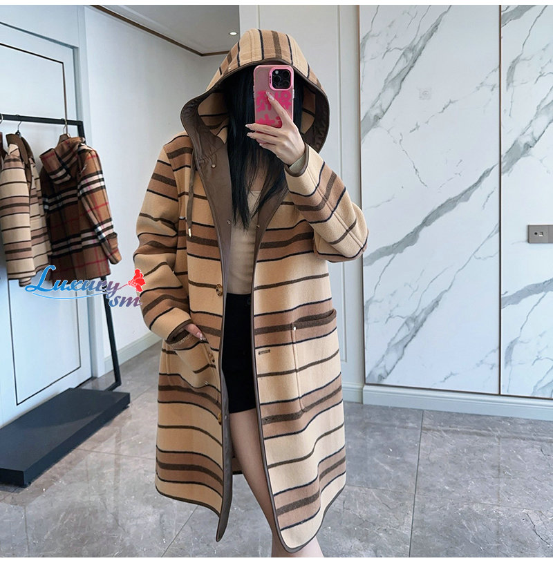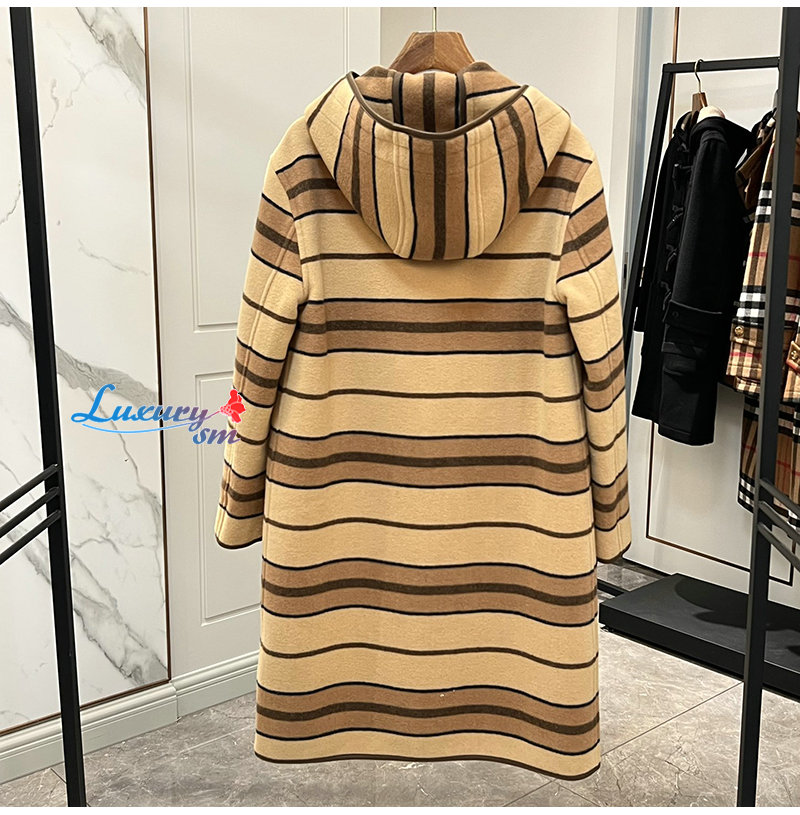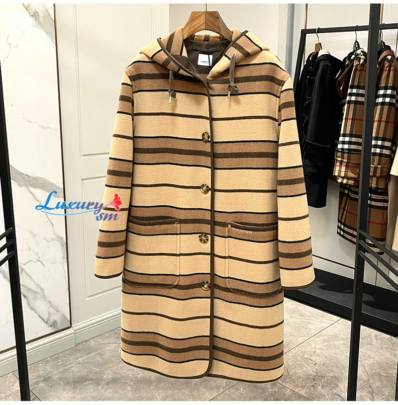 BURBERRY-112516 버버리 베이지/브라운 스트라이프 울 후드 코트 여성용