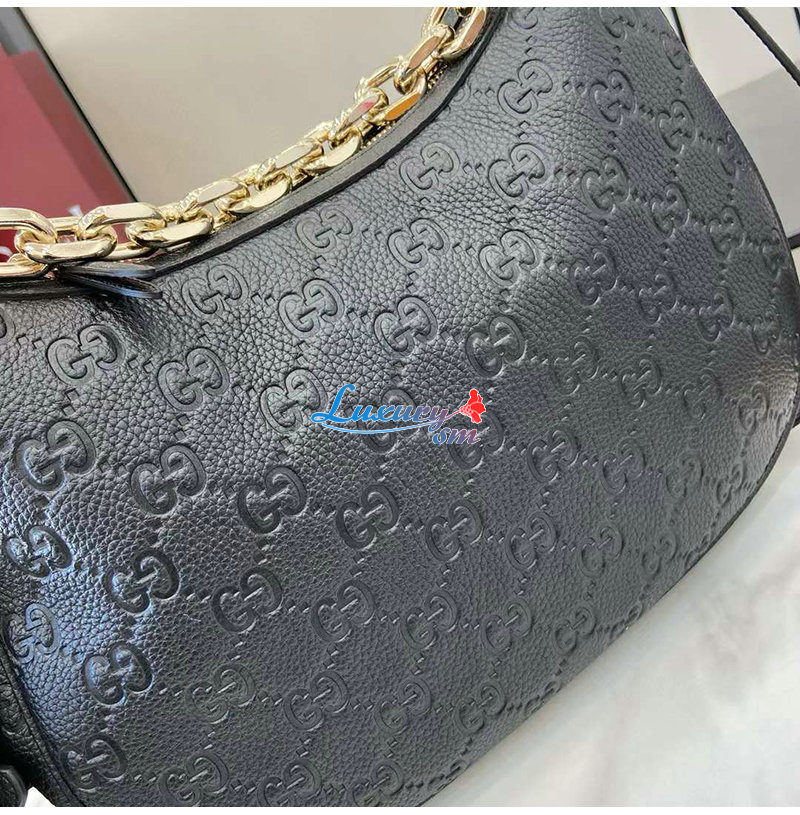 이 미디엄 숄더백은 GG 그레이니 레더로 제작되었으