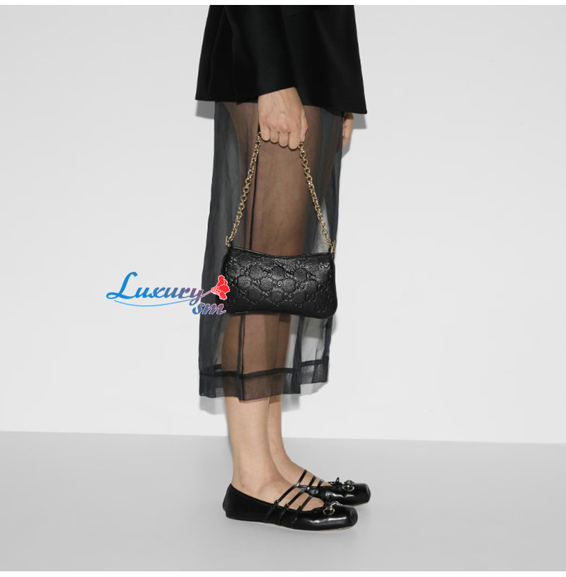 니백은 상징적인 GG 레더로 제작되었습니다.