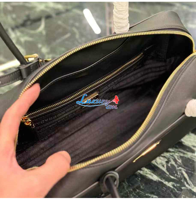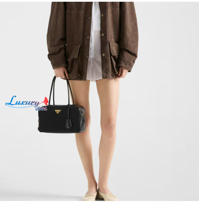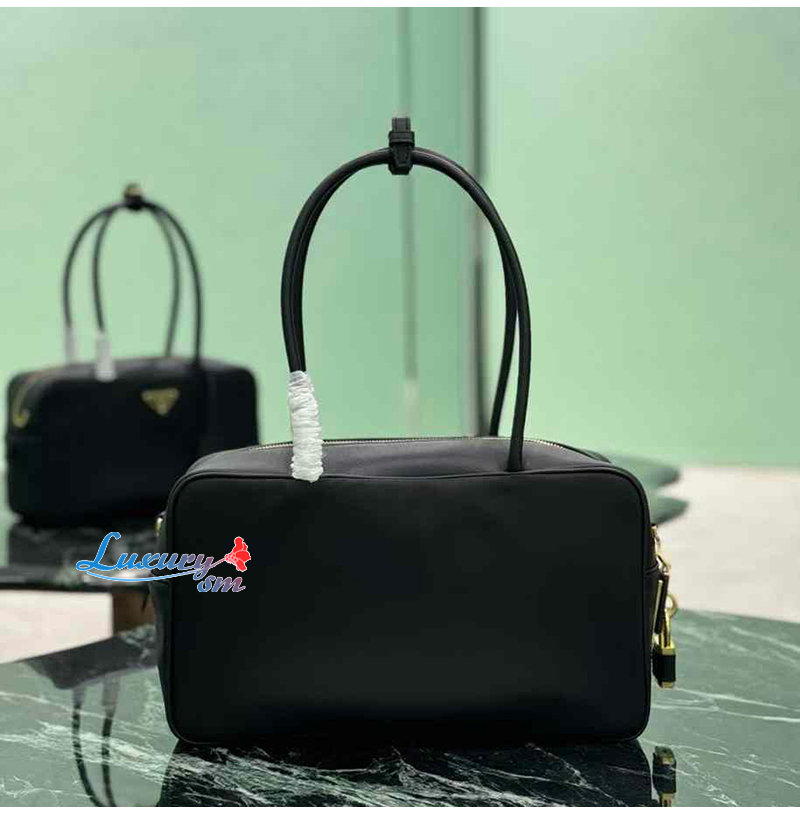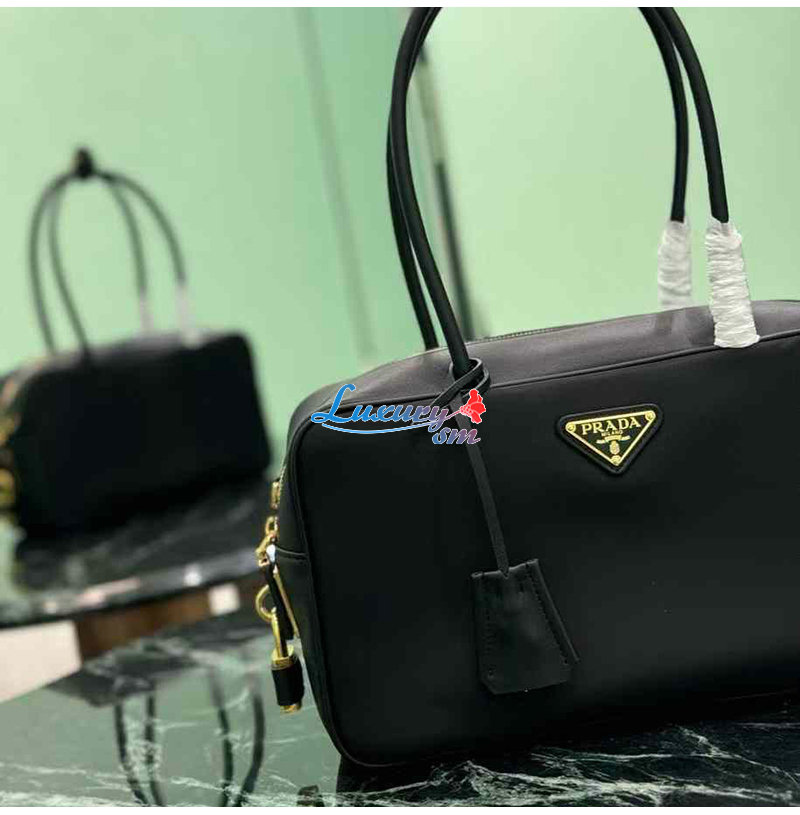 [스페셜오더]PRADA-1BB132 프라다 블랙 미디엄 리나일론 가죽 탑 핸들 백