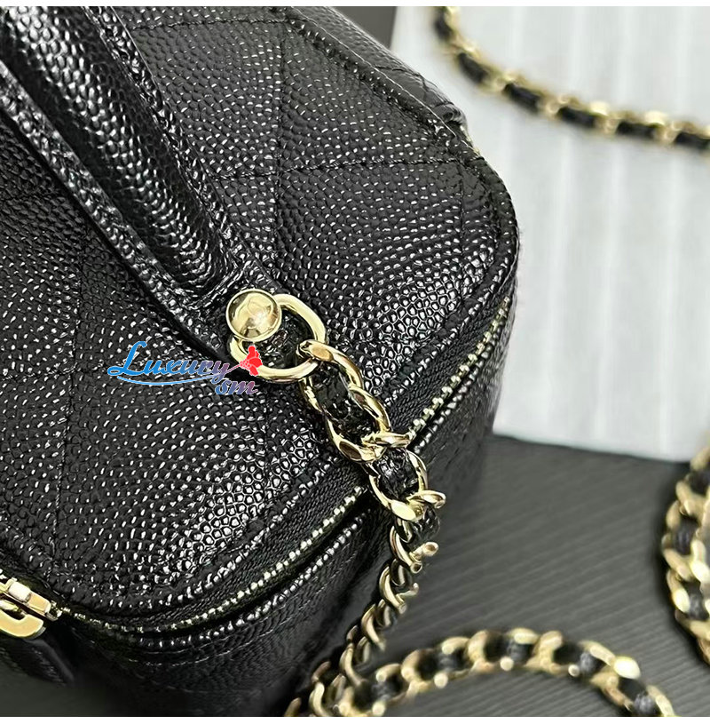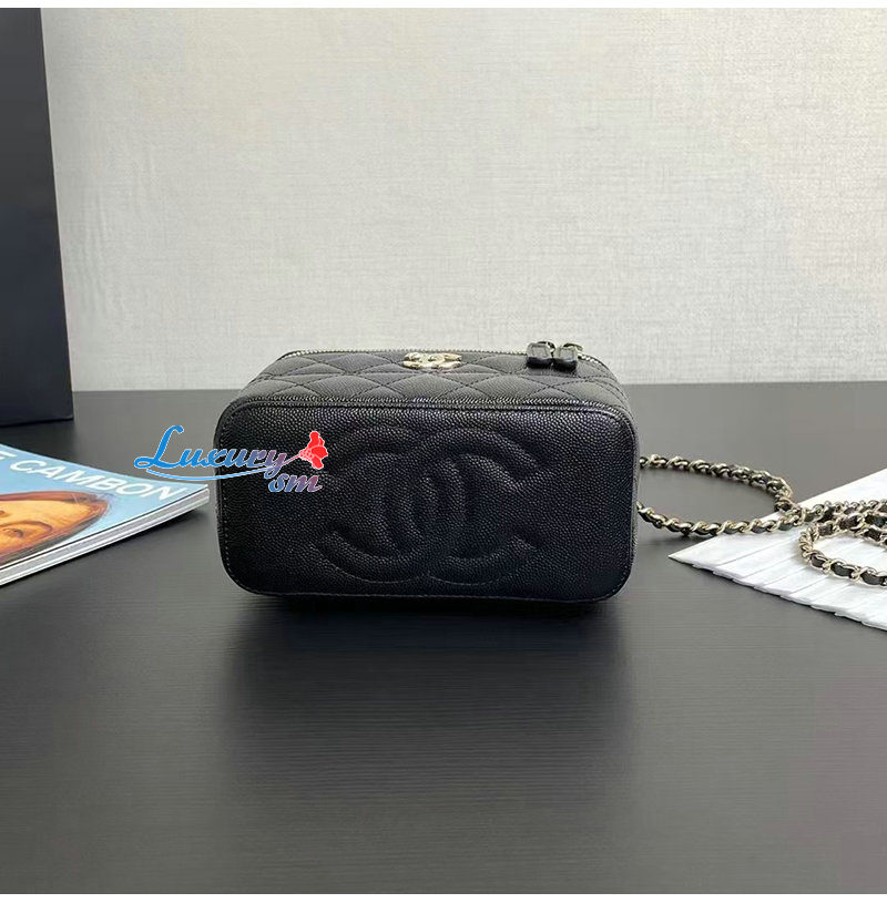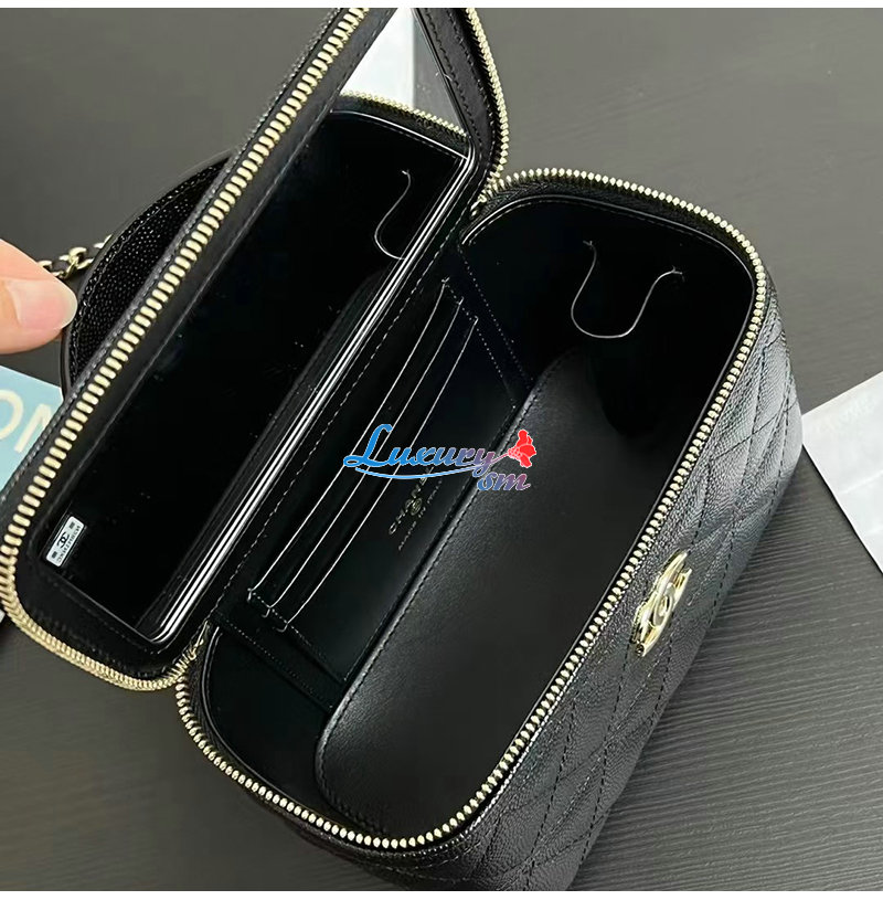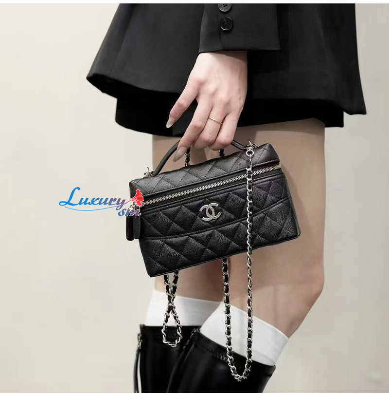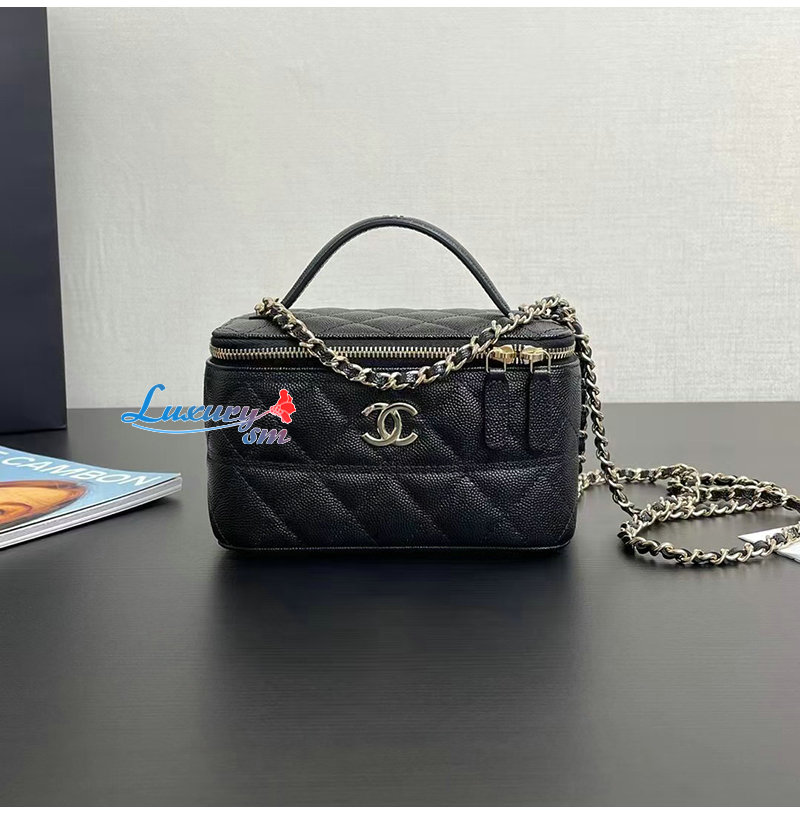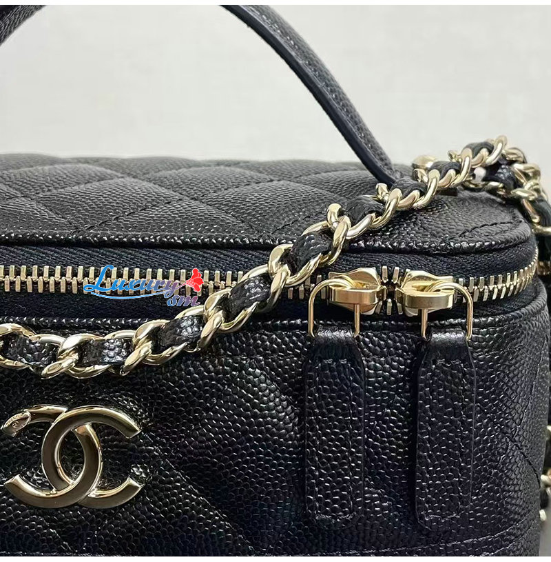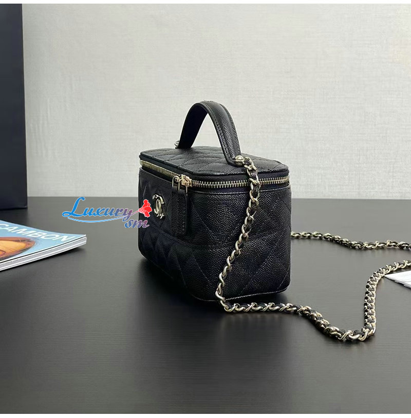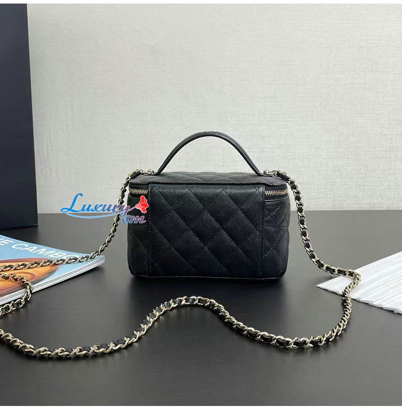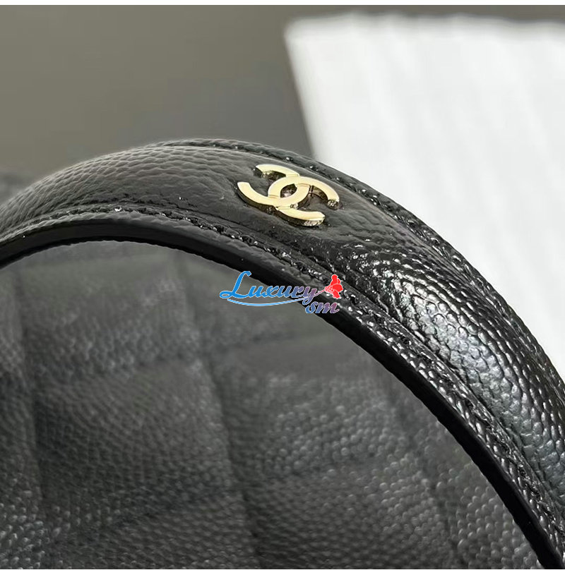 CHANEL-12201 샤넬 블랙 캐비어 가죽 탑 핸들 백