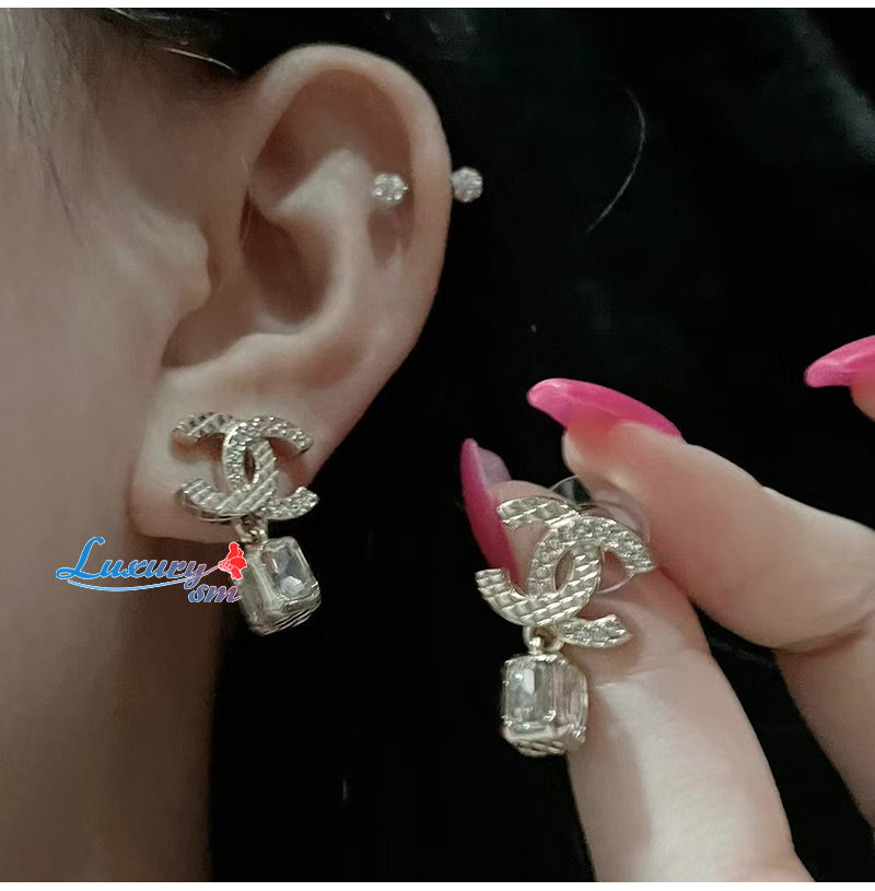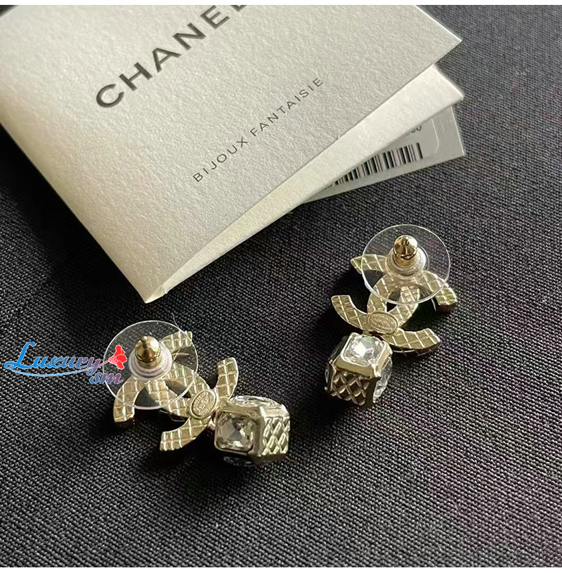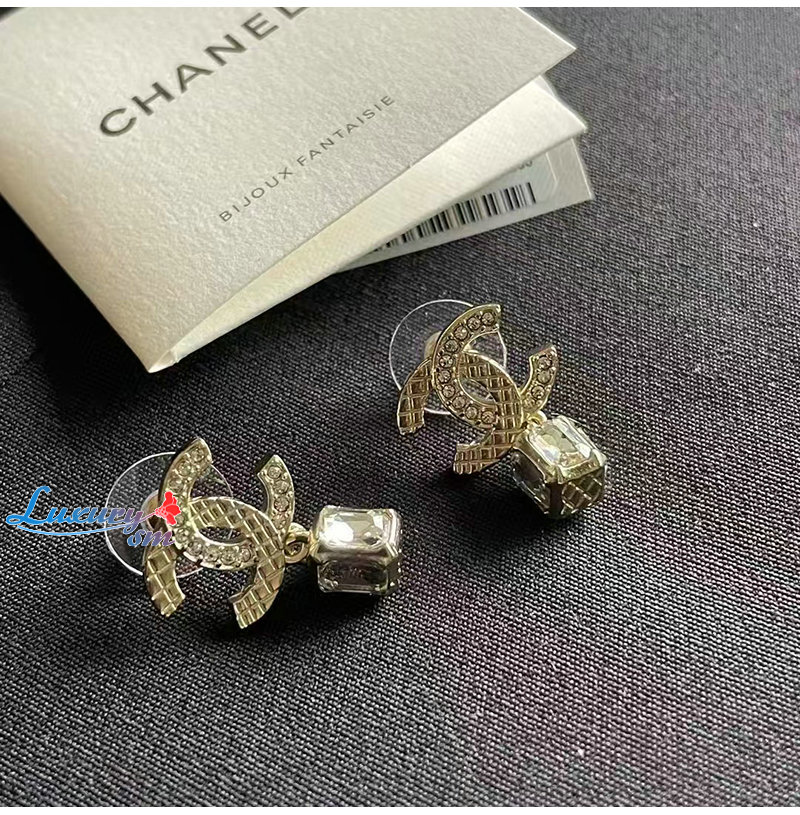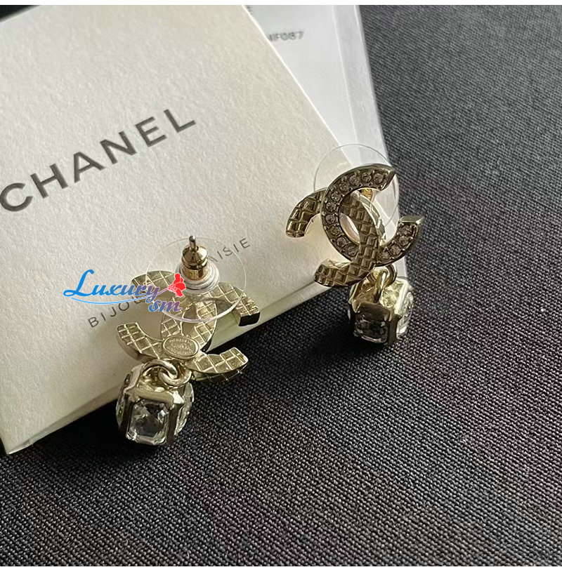 CHANEL-7321 샤넬 골드 크리스탈 장식 CC 로고 귀걸이