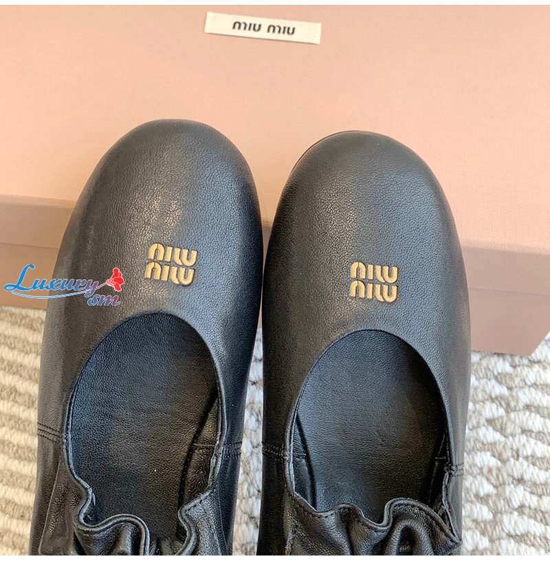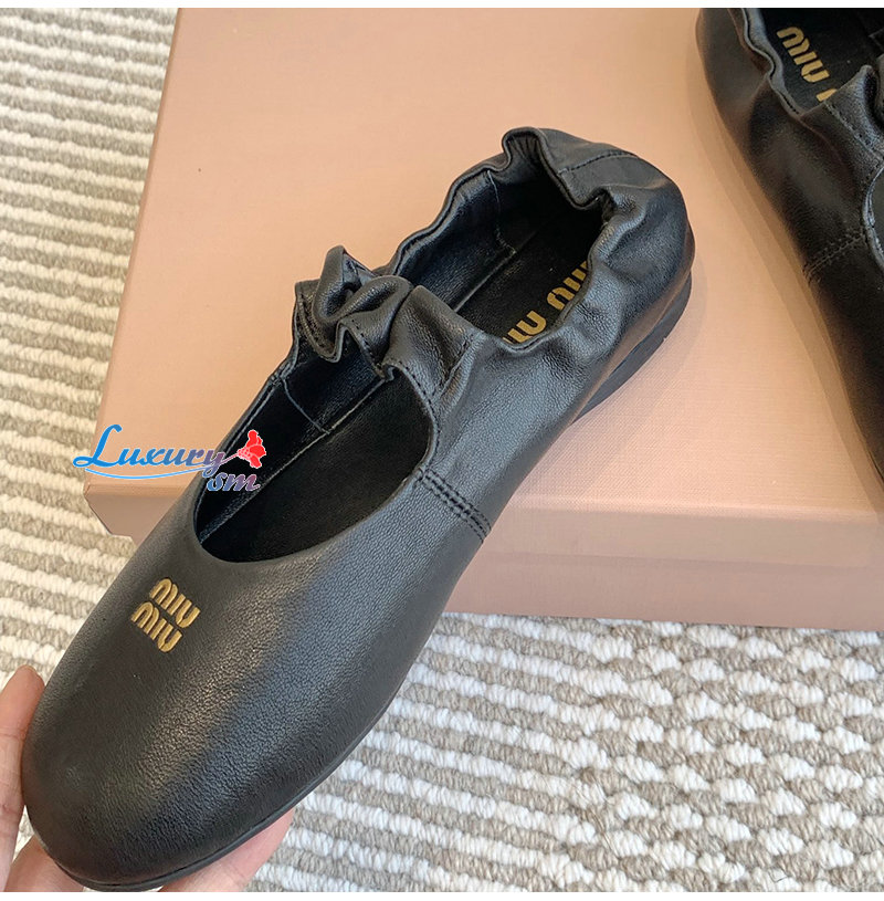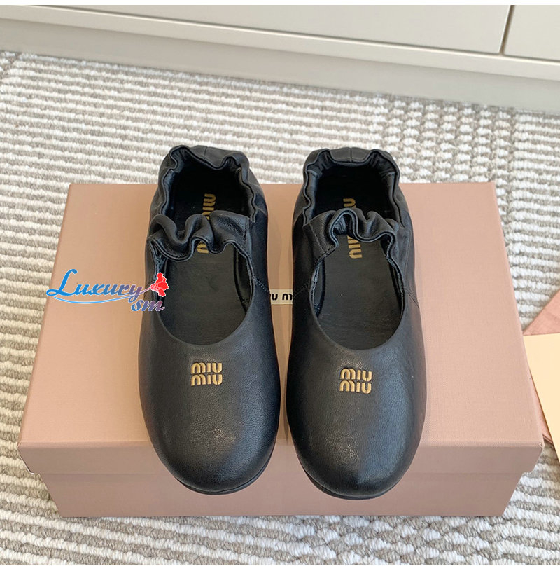 MIUMIU-5F340E 미우미우 블랙 루슈 나파 가죽 발레리나