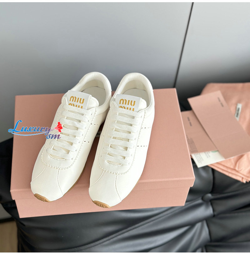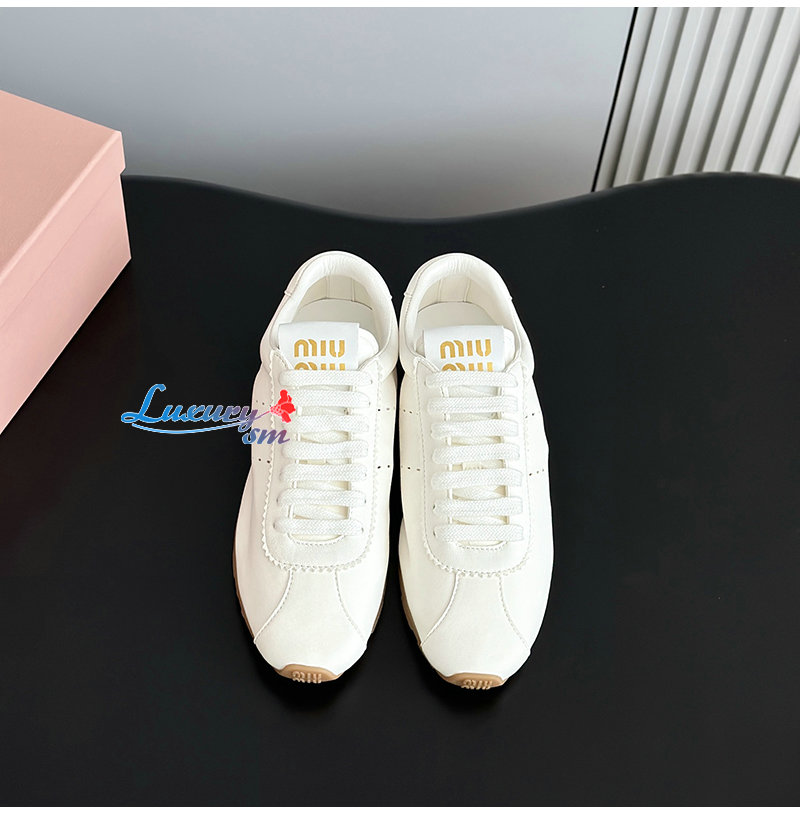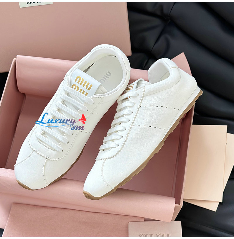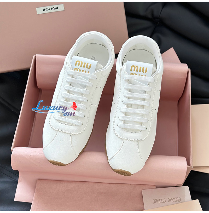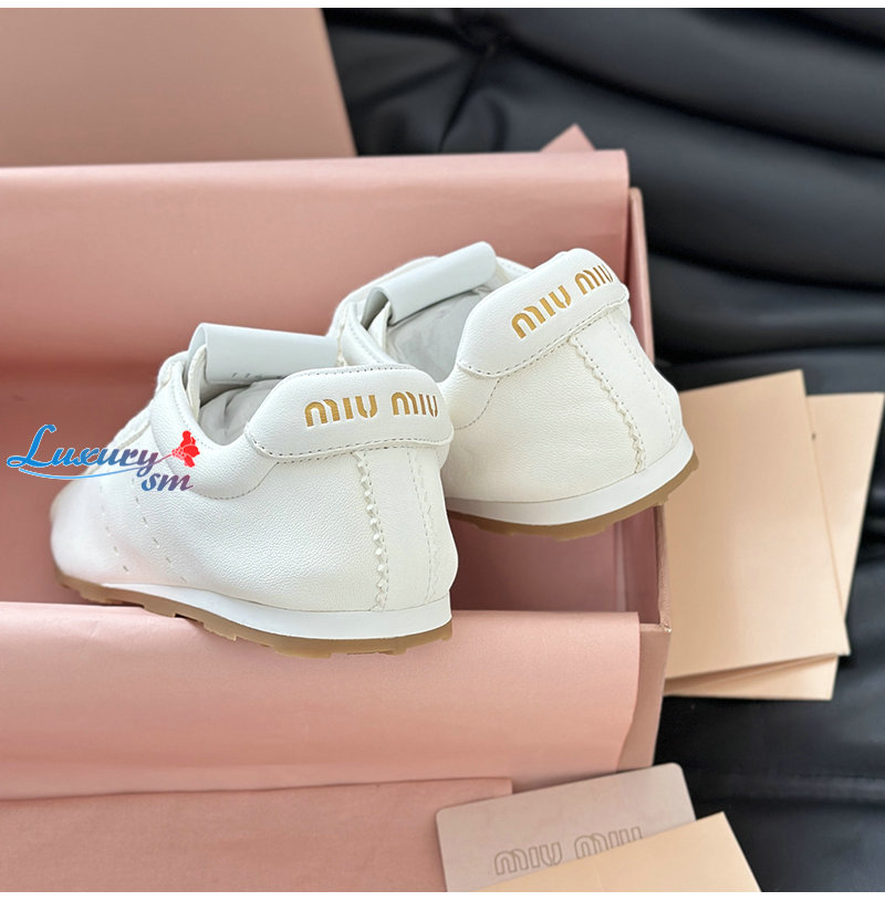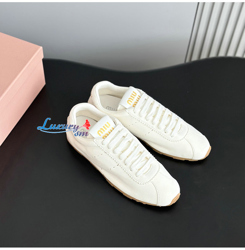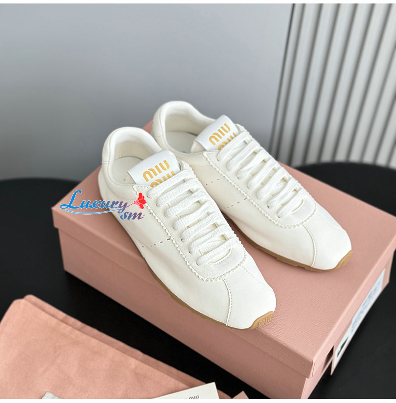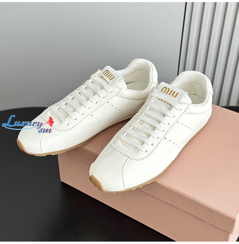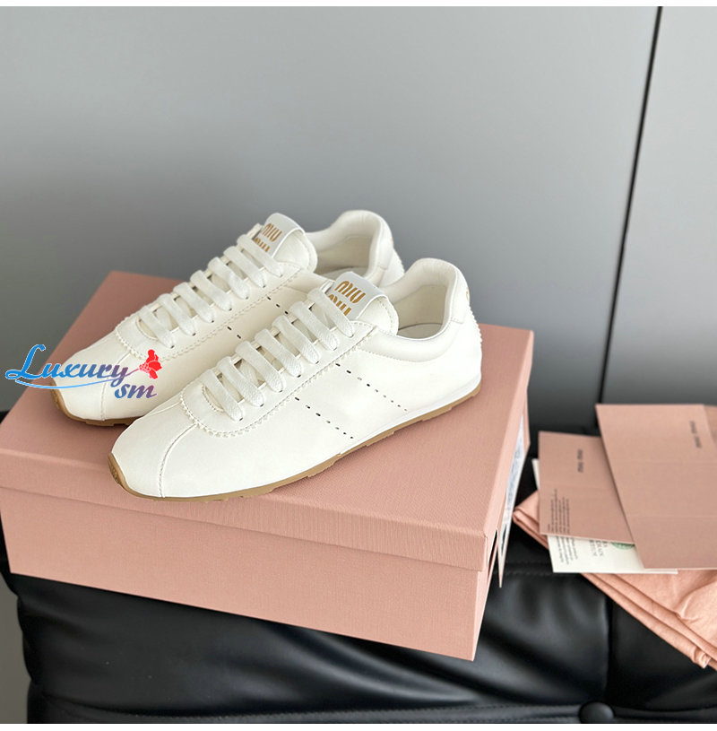 MIUMIU-5E114E 미우미우 화이트 플룸 나파 가죽 스니커즈 여성용