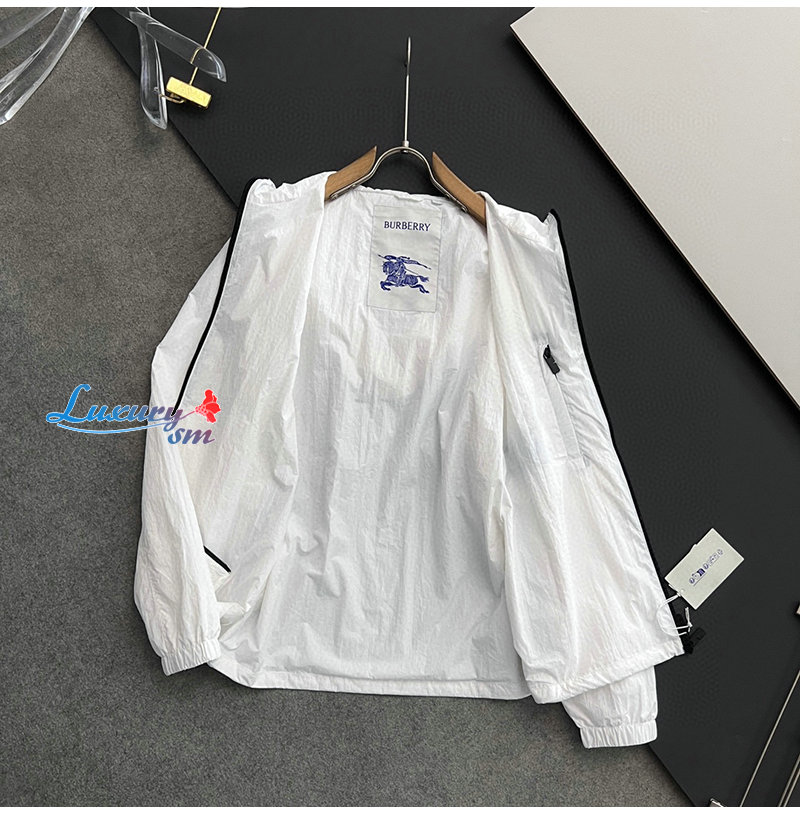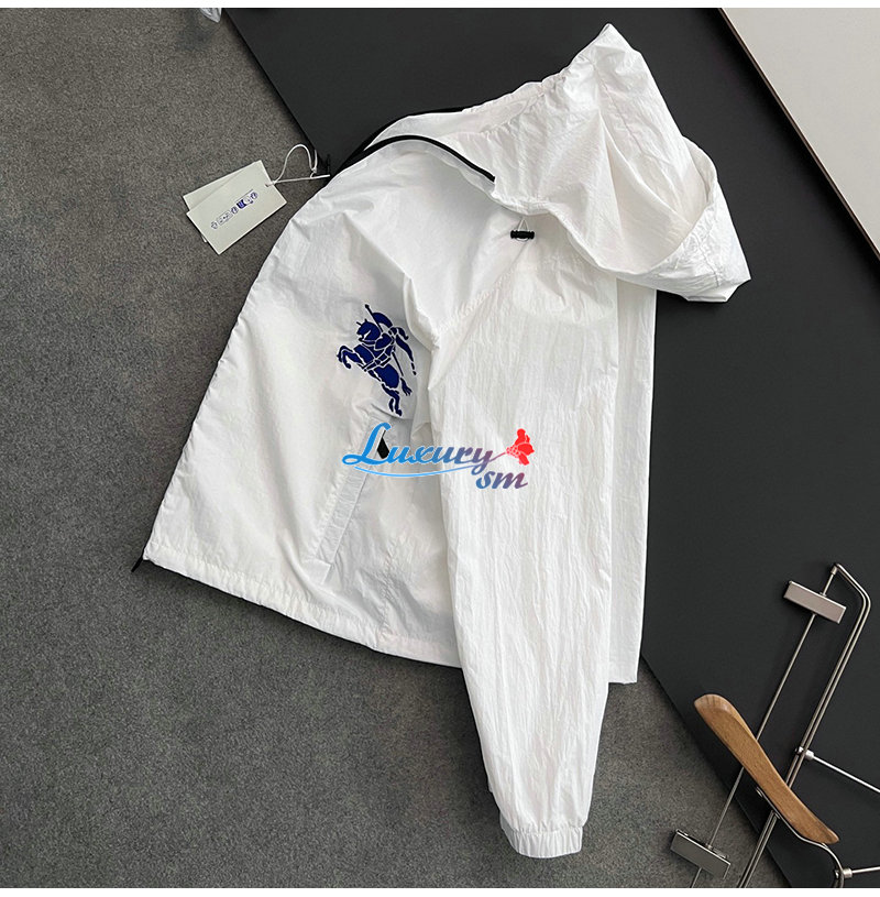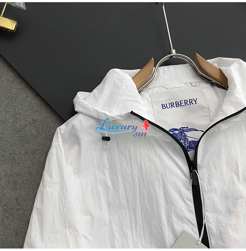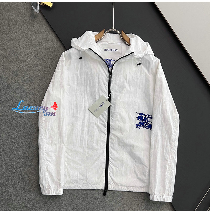 BURBERRY-02199 버버리 화이트 아플리케 장식 바람막이 후드 재킷 남성용