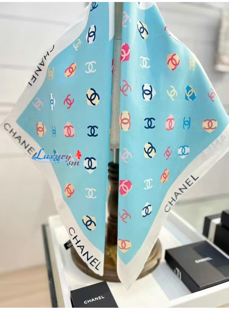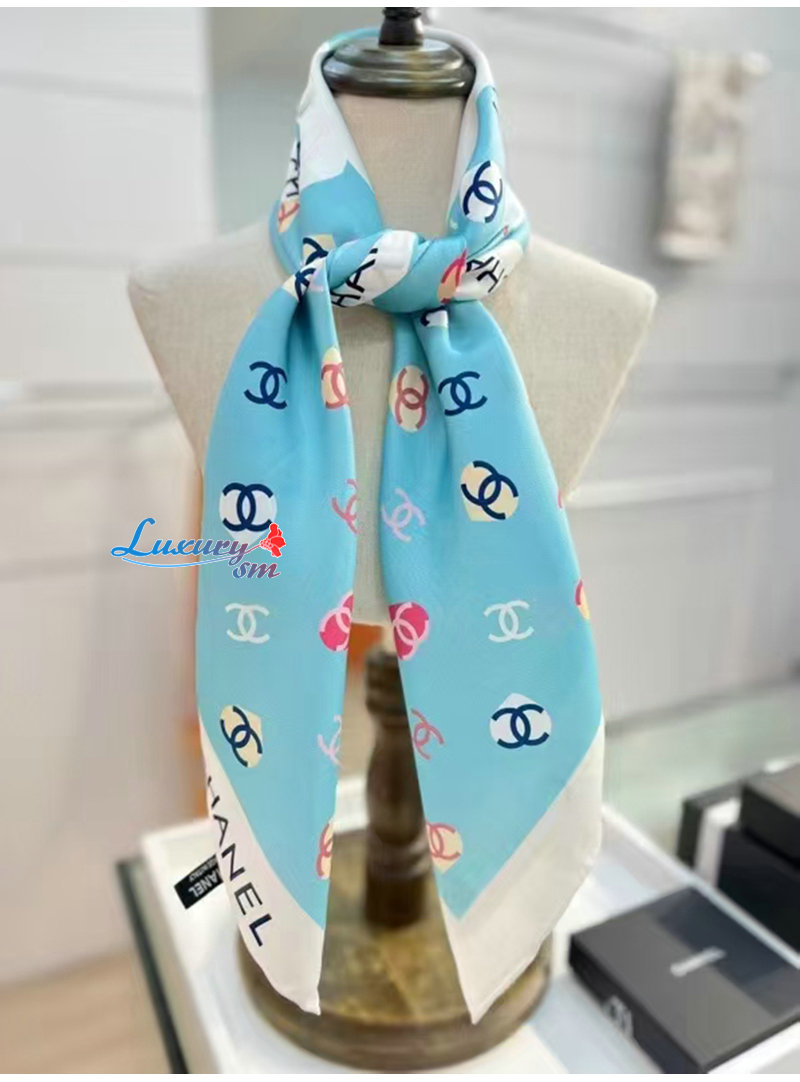 CHANEL-022011 샤넬 라이트 블루 CC 로고 실크 스카프