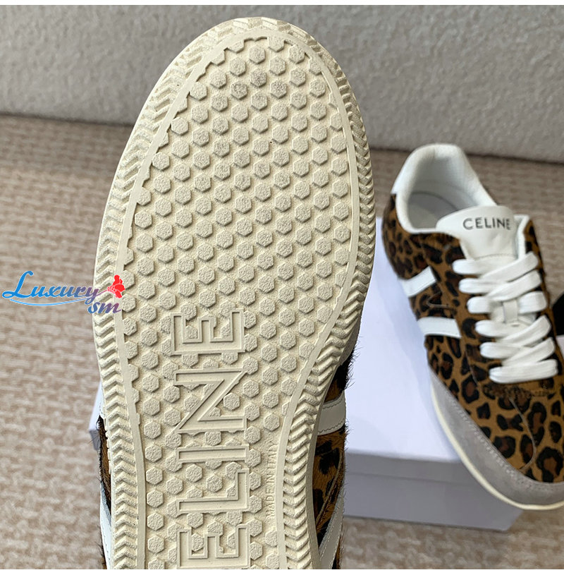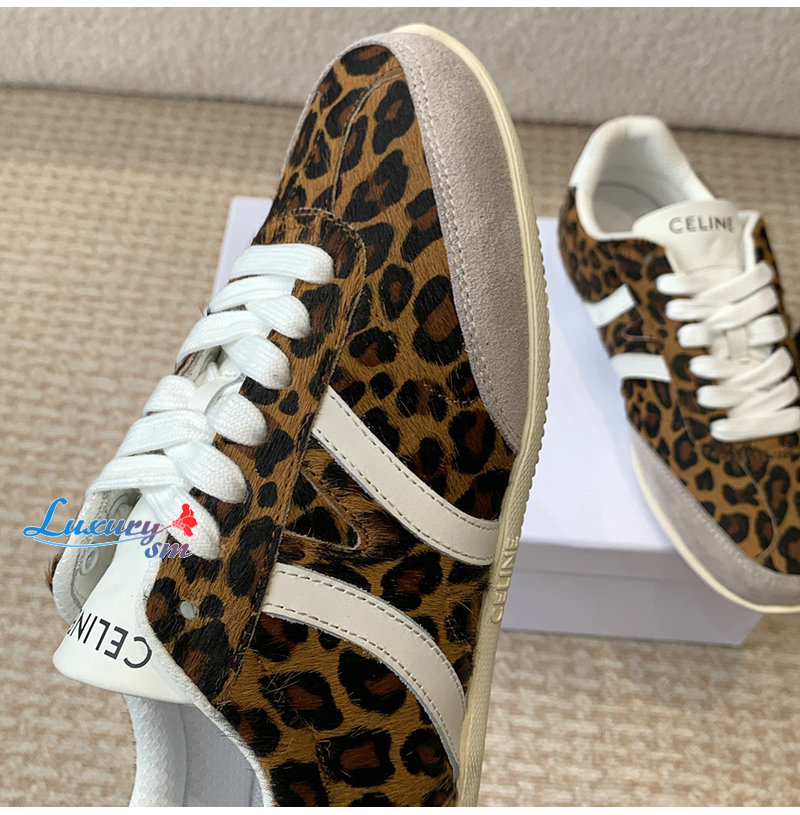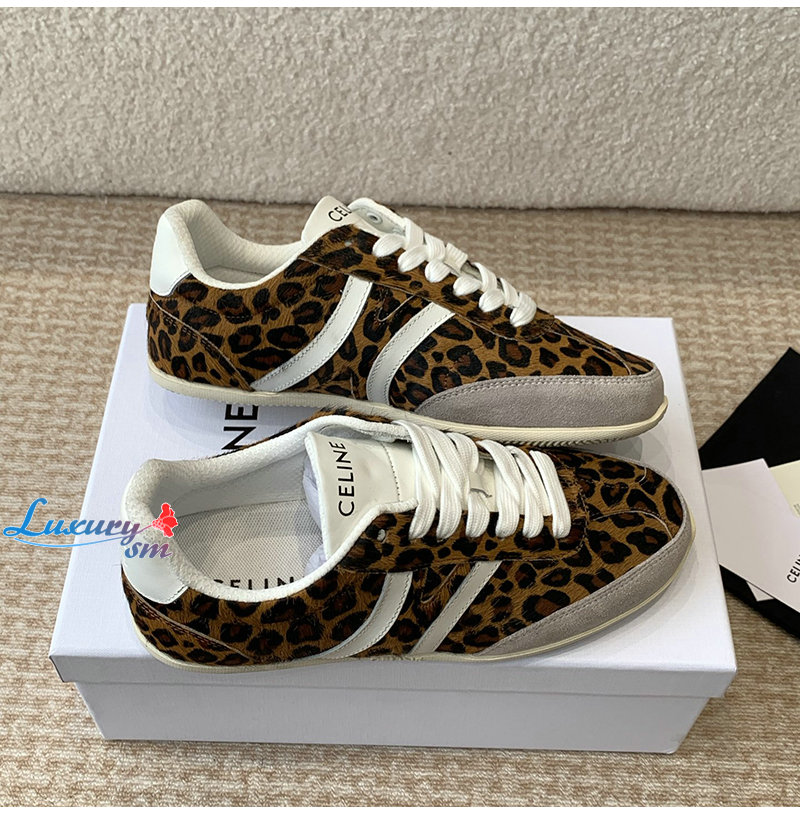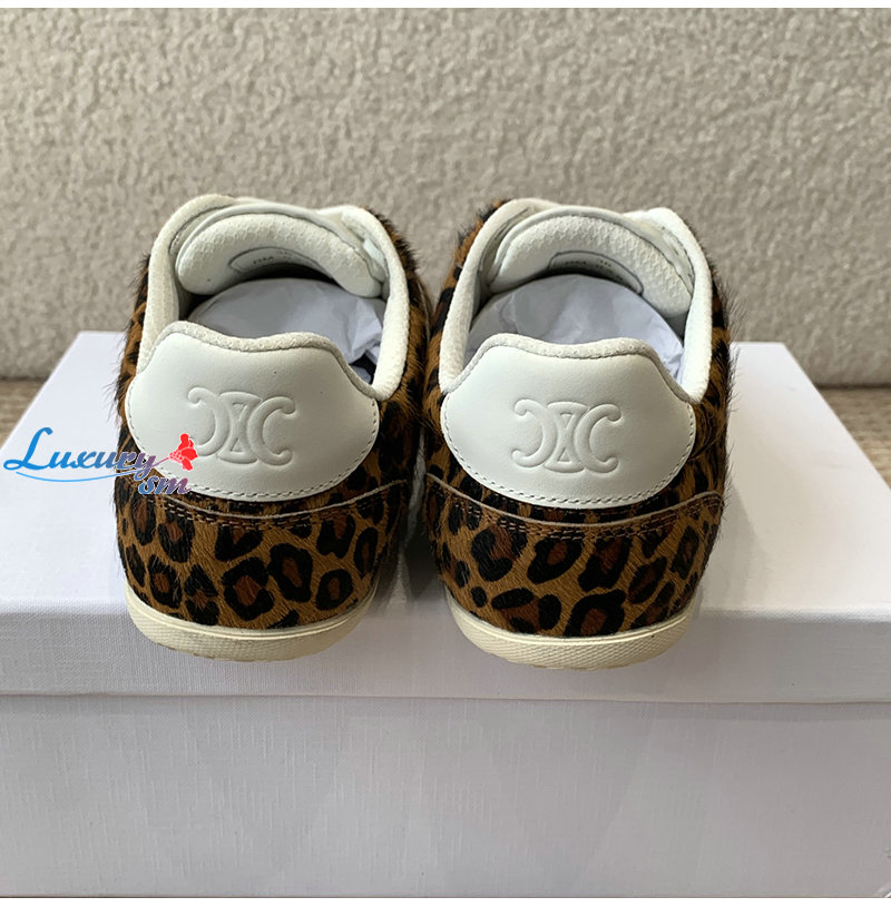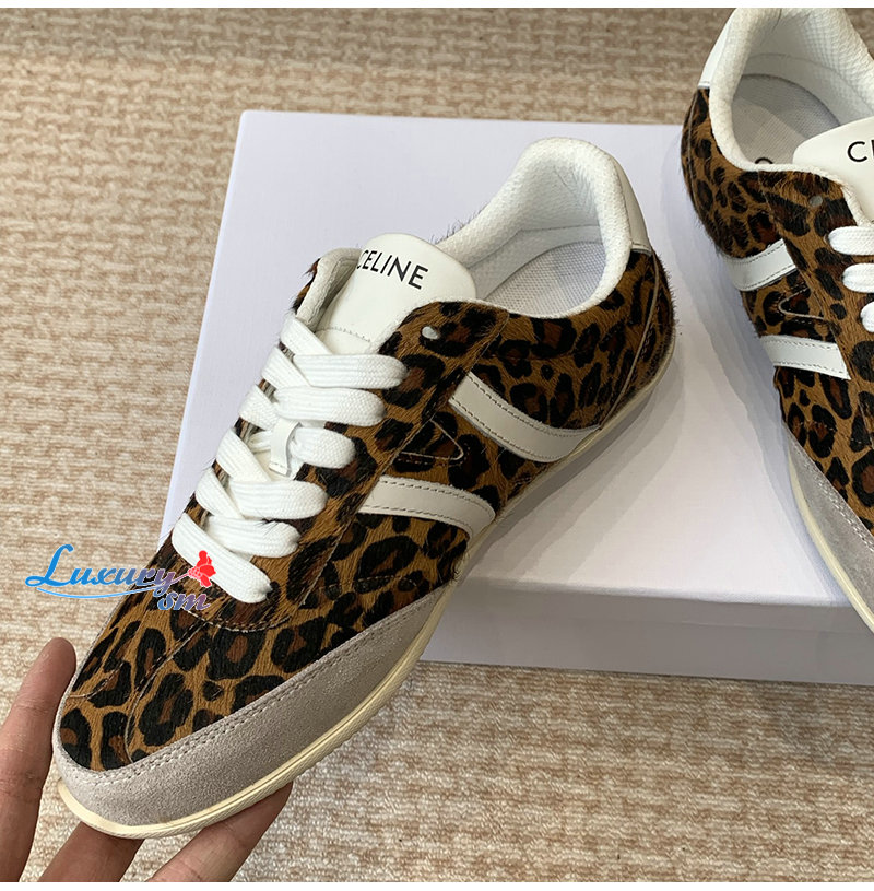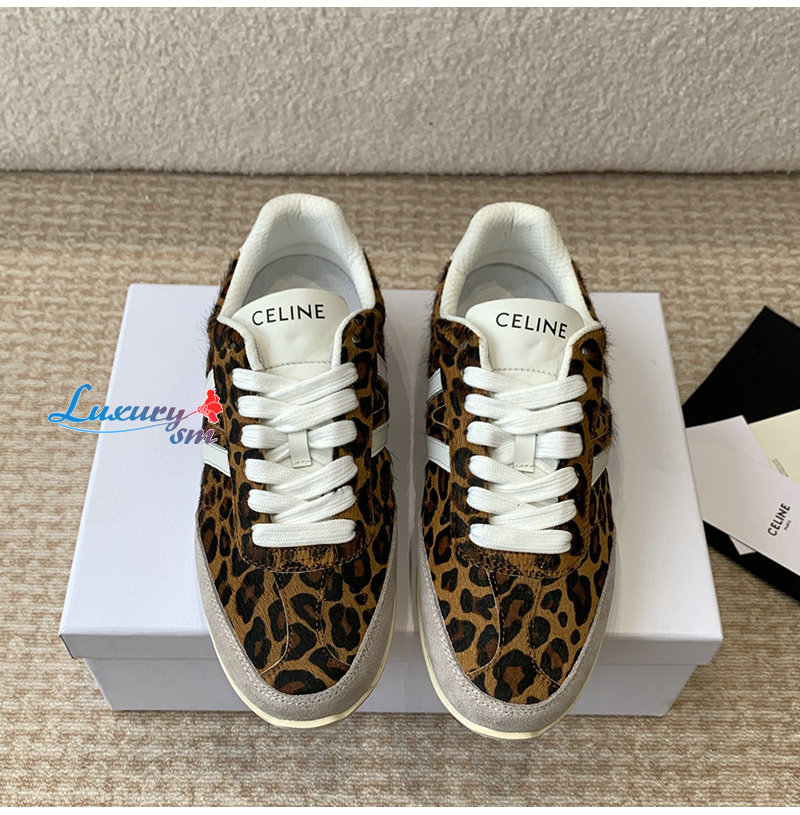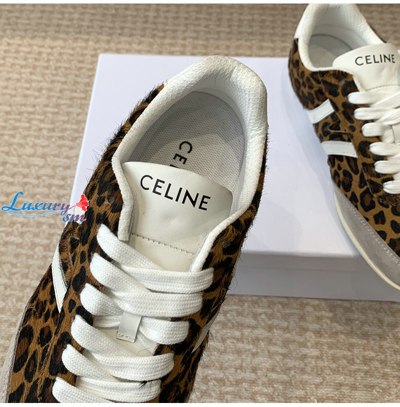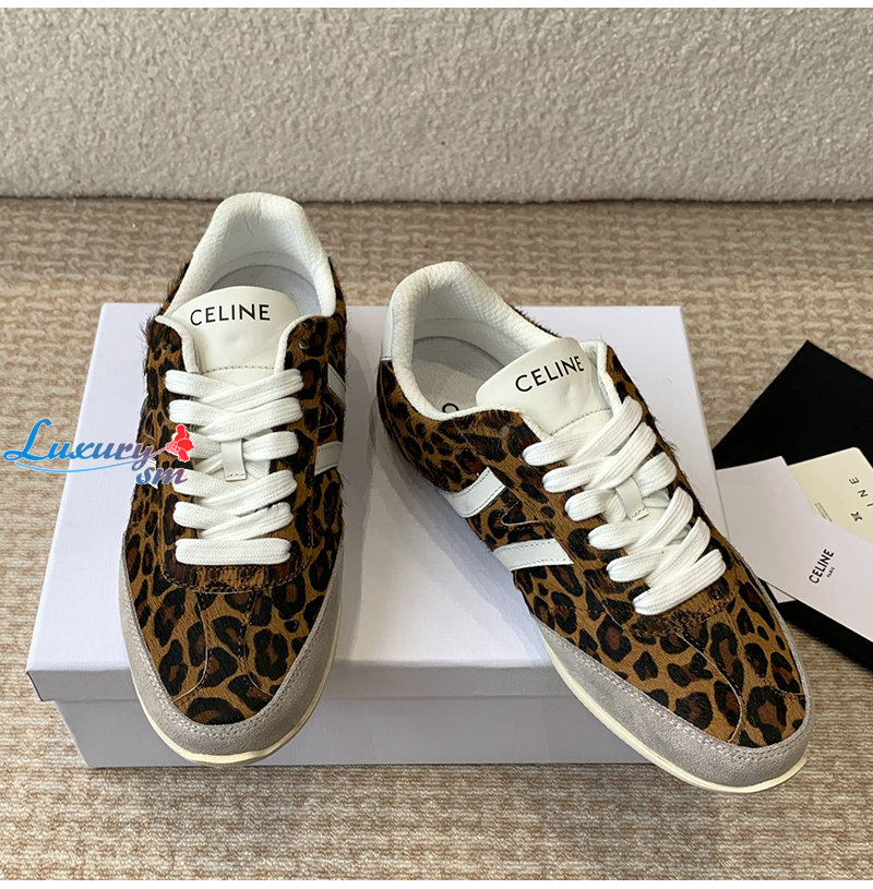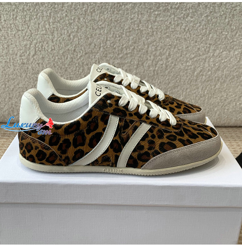 CELINE-359275 셀린느 브라운 레오파드 프린트 CELINE 조거 로우 레이스업 스니커즈 여성용