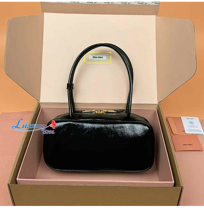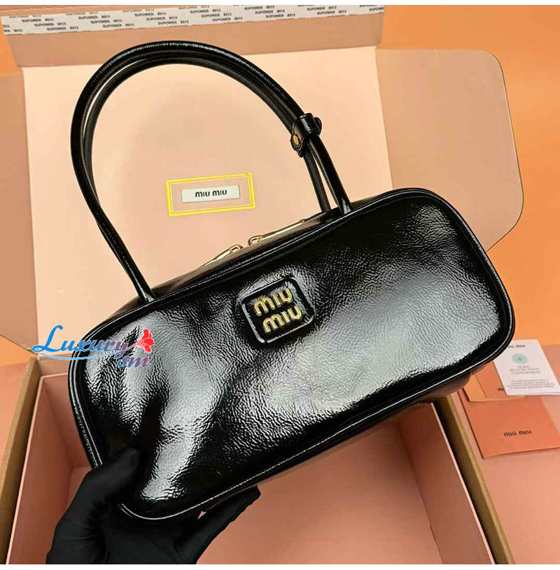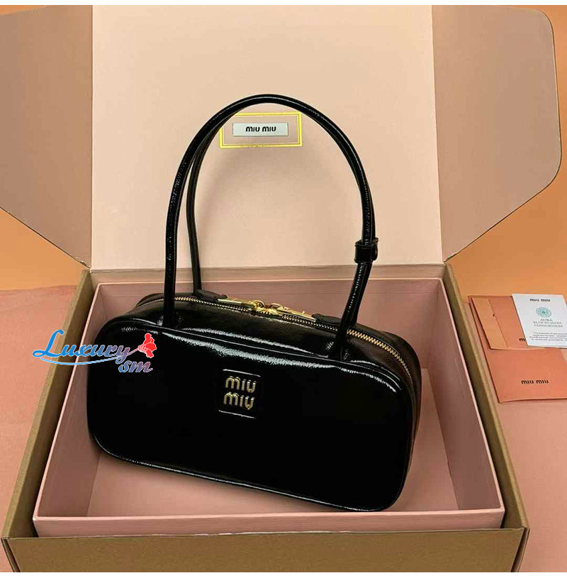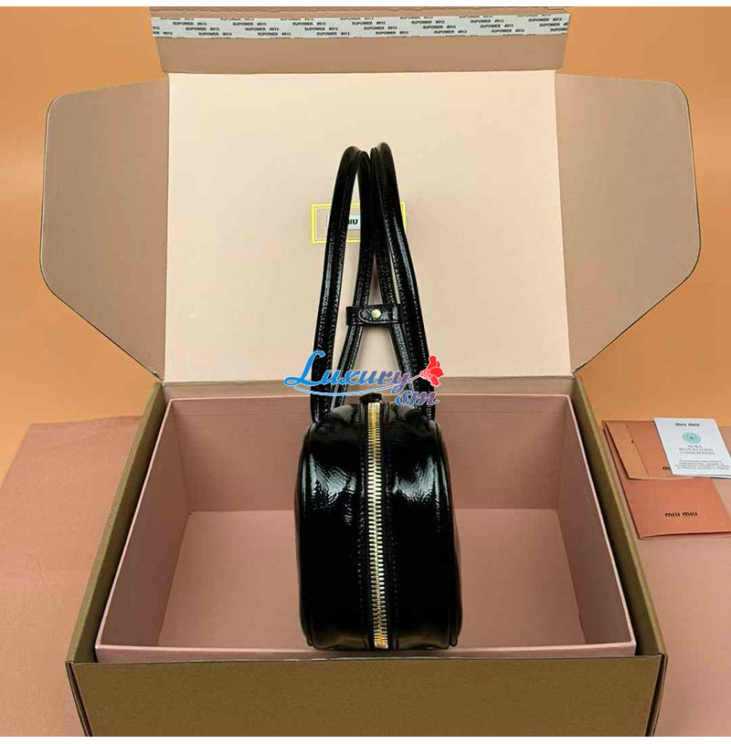 [스페셜오더]MIUMIU-5BB173 미우미우 블랙 나플락 페이턴트 가죽 보 백