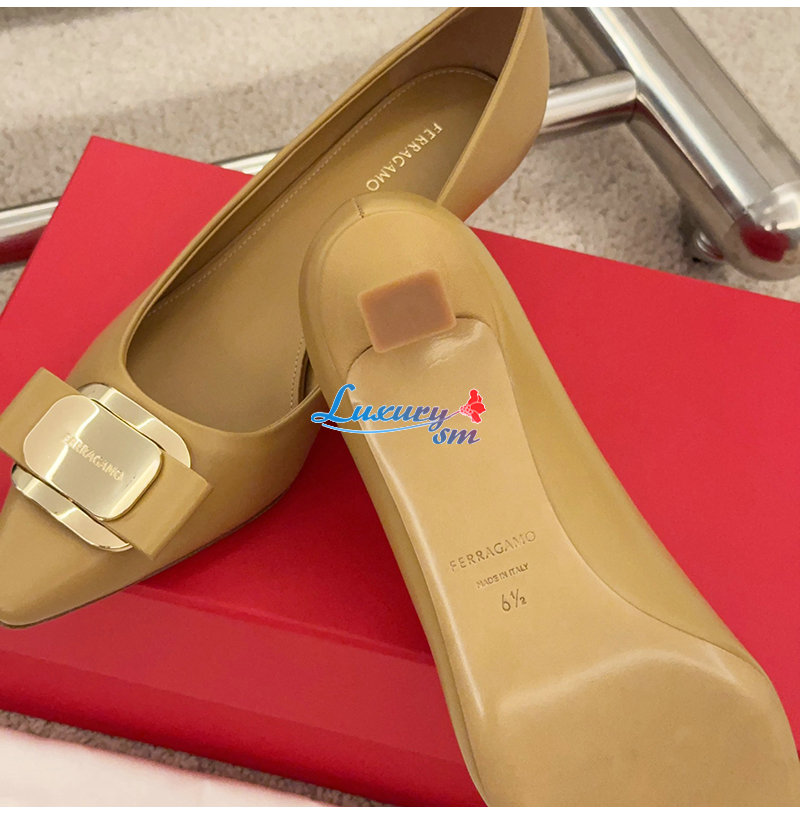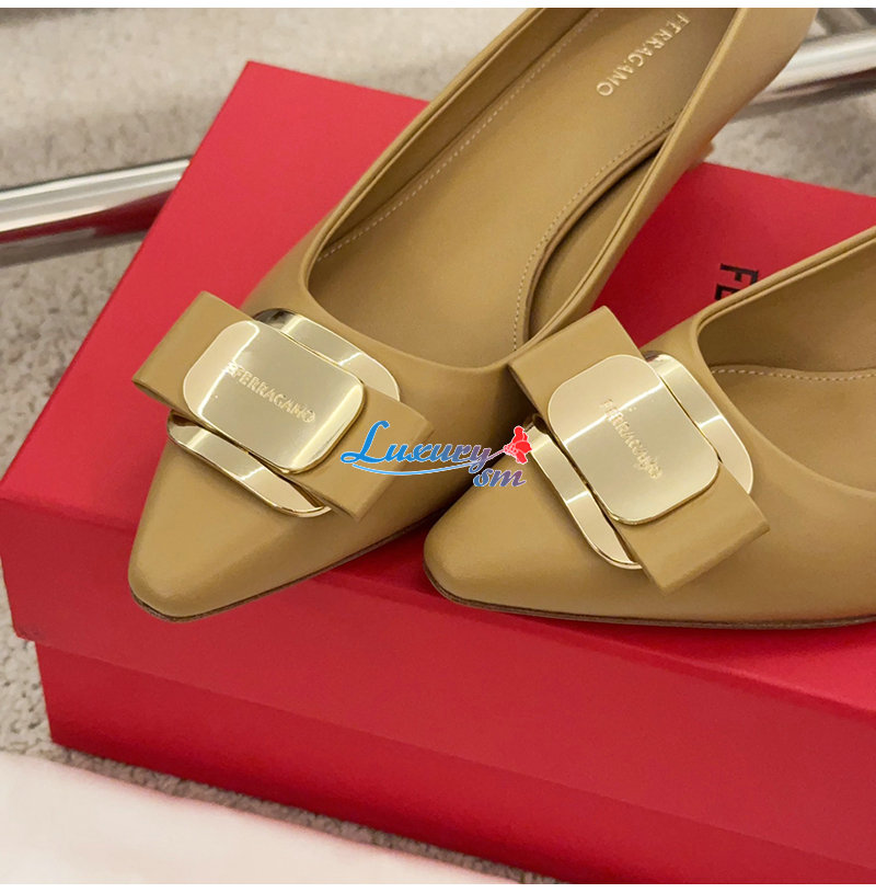 Ferragamo-01H450 페라가모 카멜 뉴 바라 플레이트 키튼 힐 펌프스
