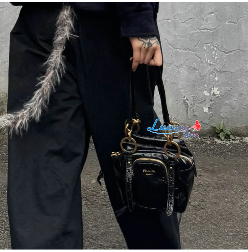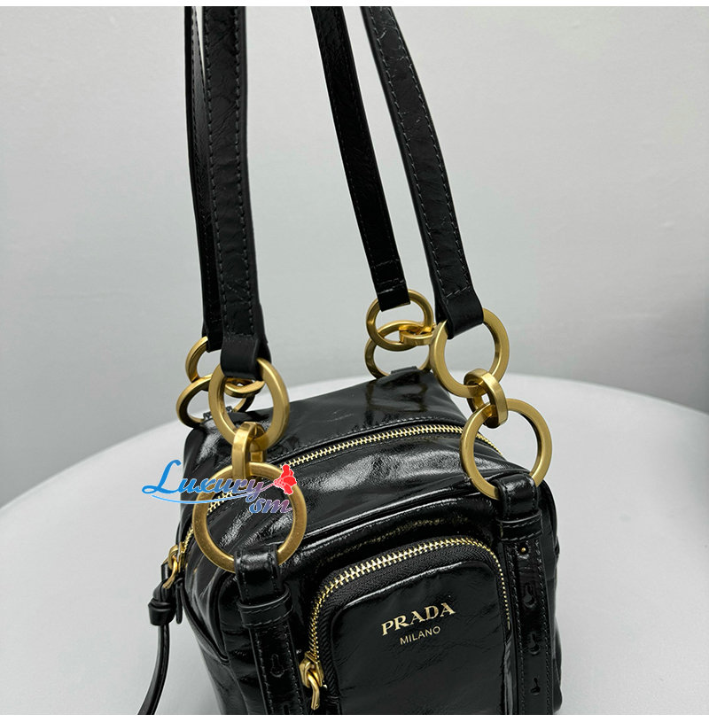 [스페셜오더]PRADA-1BB137 프라다 블랙 댕글 가죽 탑 핸들 미니백