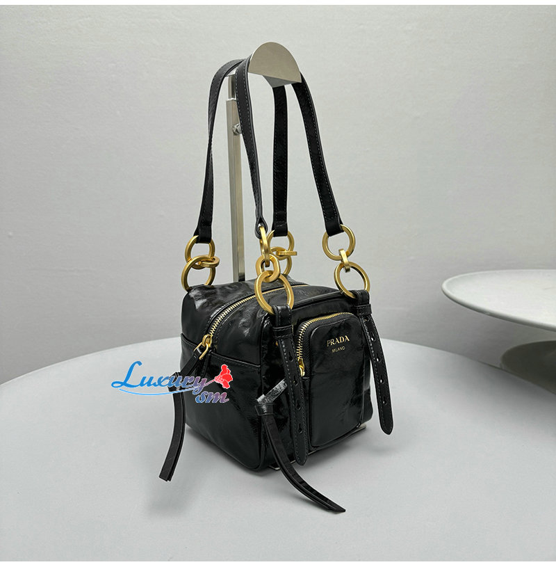 PRADA-1BB137 프라다 블랙 댕글 가죽 탑 핸들