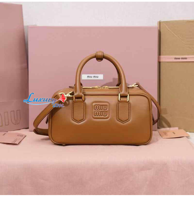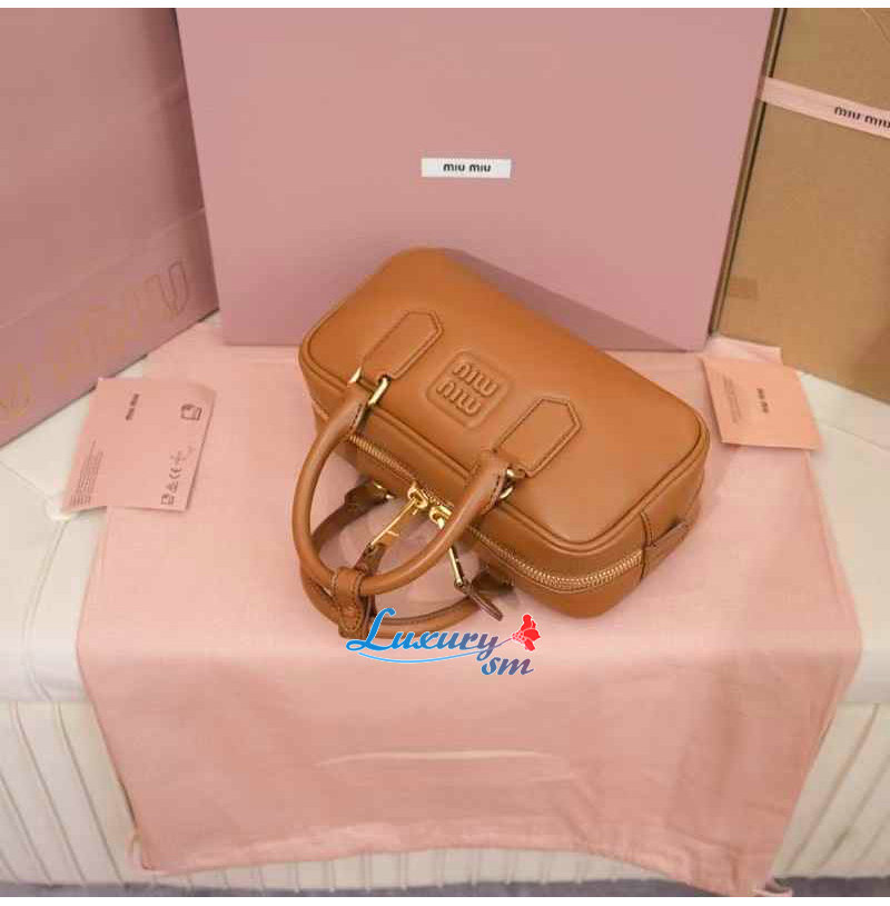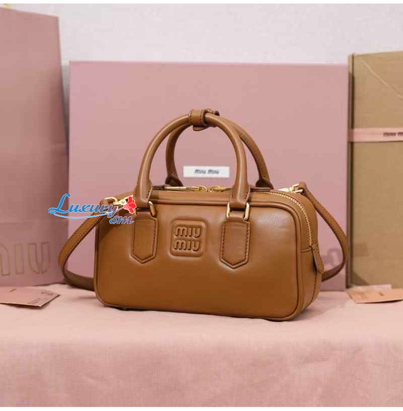 [스페셜오더]MIU MIU-5BB142 미우미우 캐러멜 마테라쎄 아르카디 스몰 탑 핸들 백 22cm