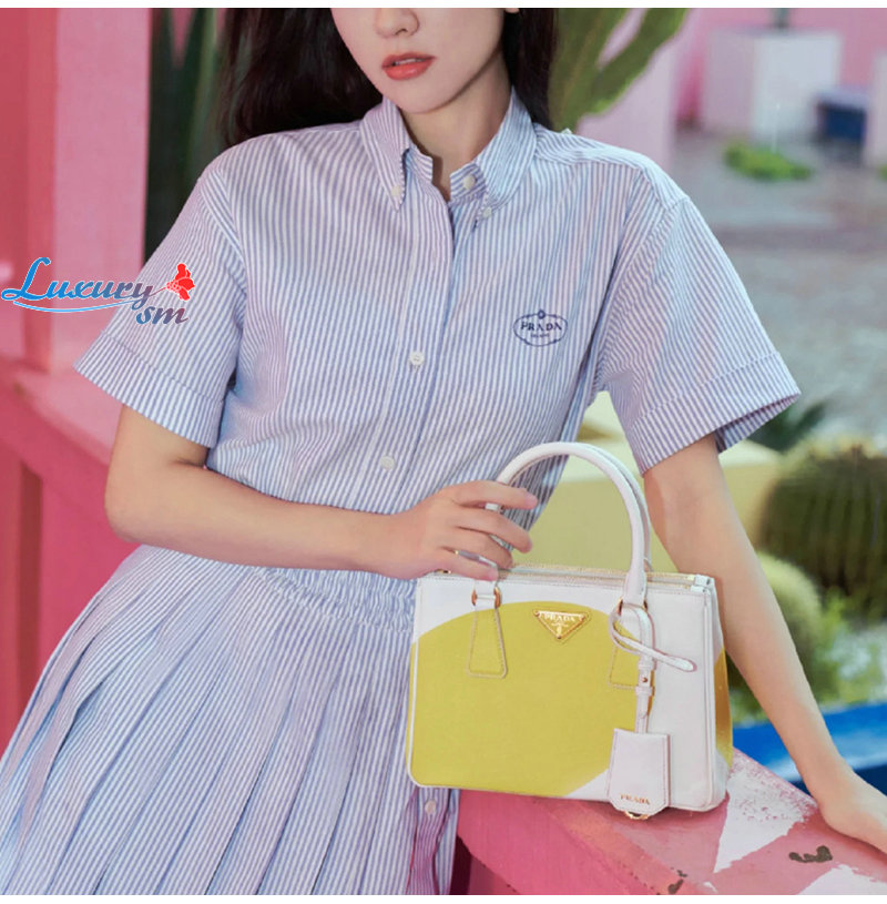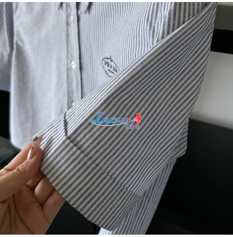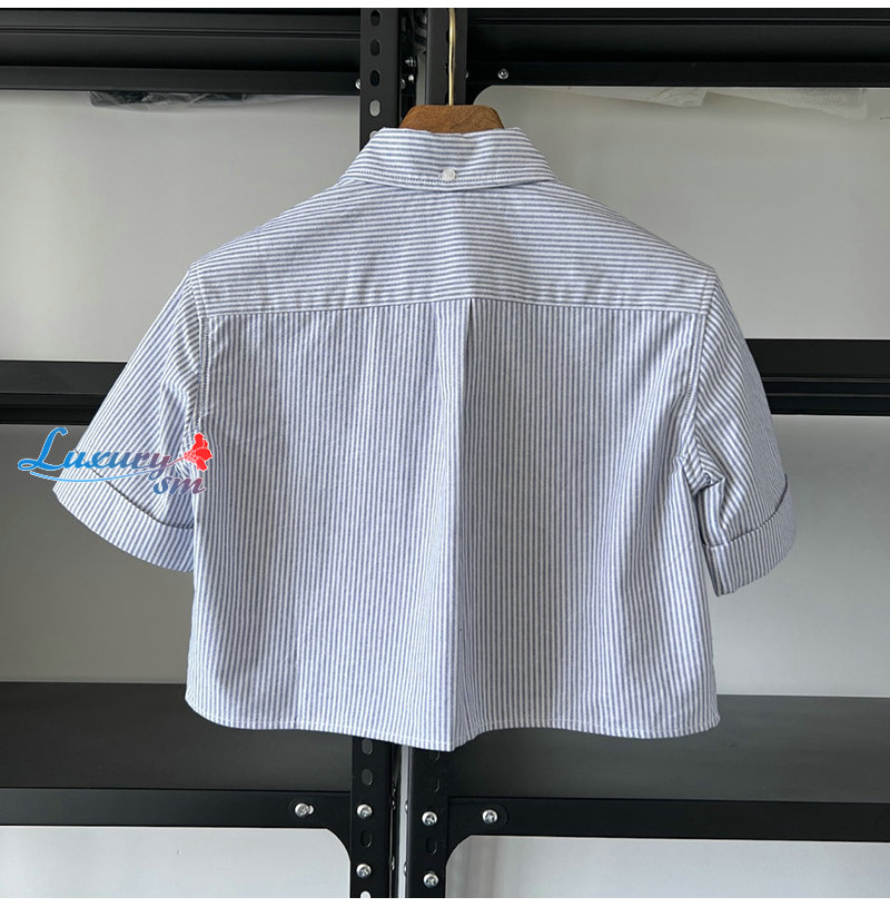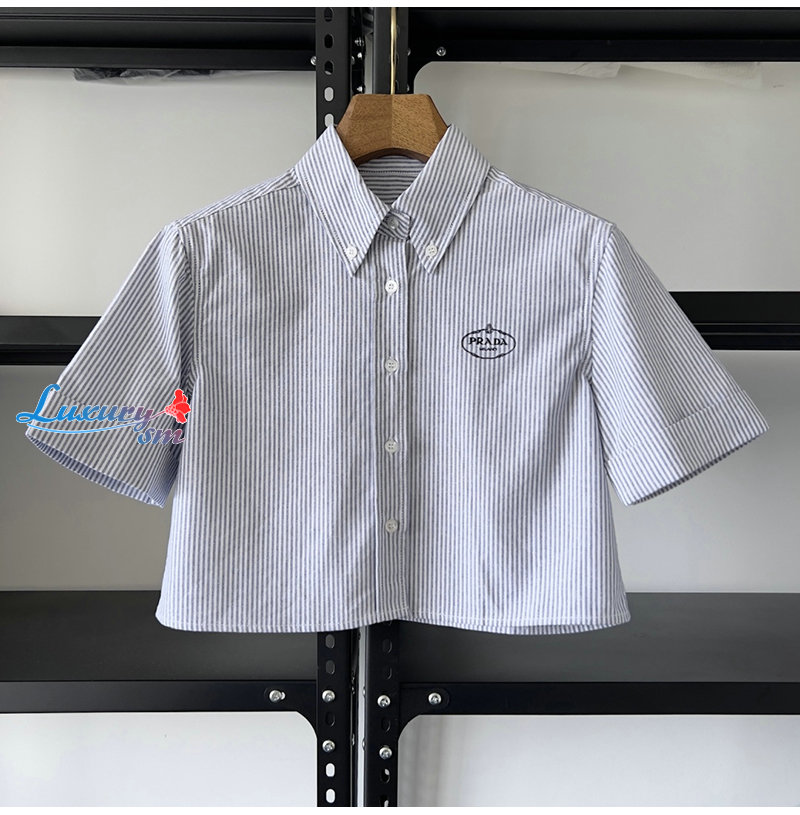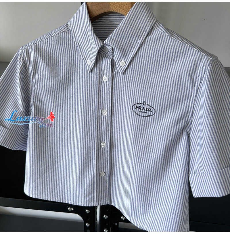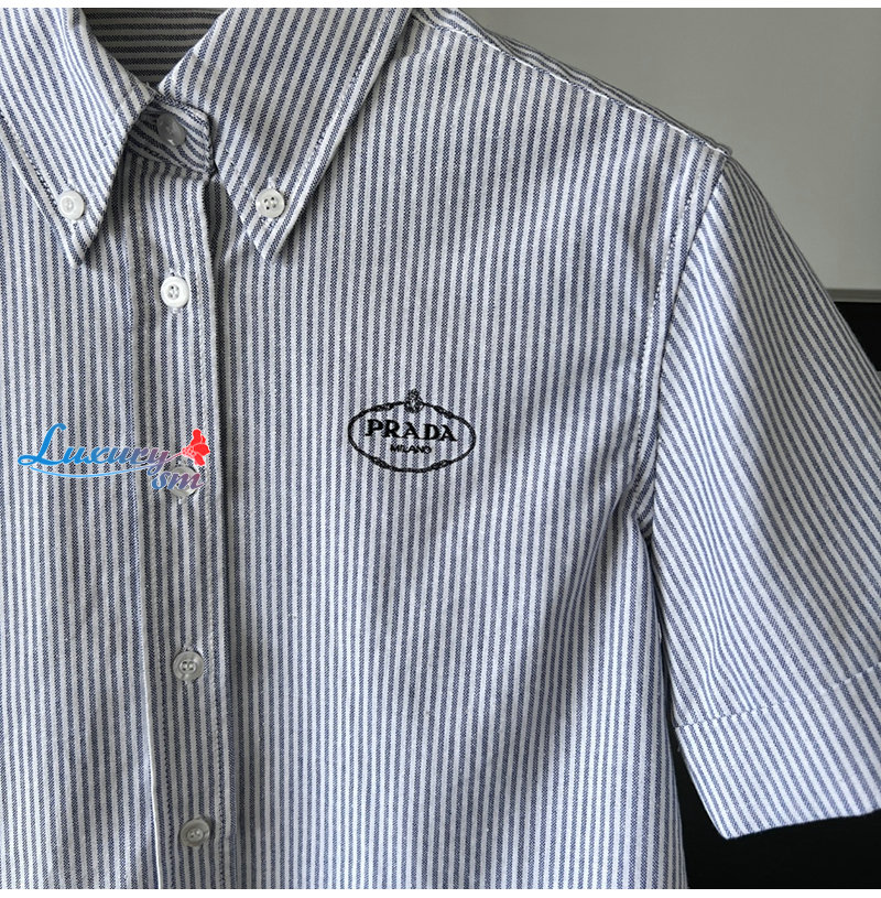PRADA-03246 프라다 블루 스트라이프 반팔 셔츠 여성용